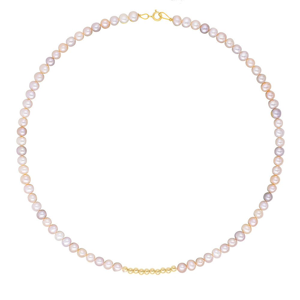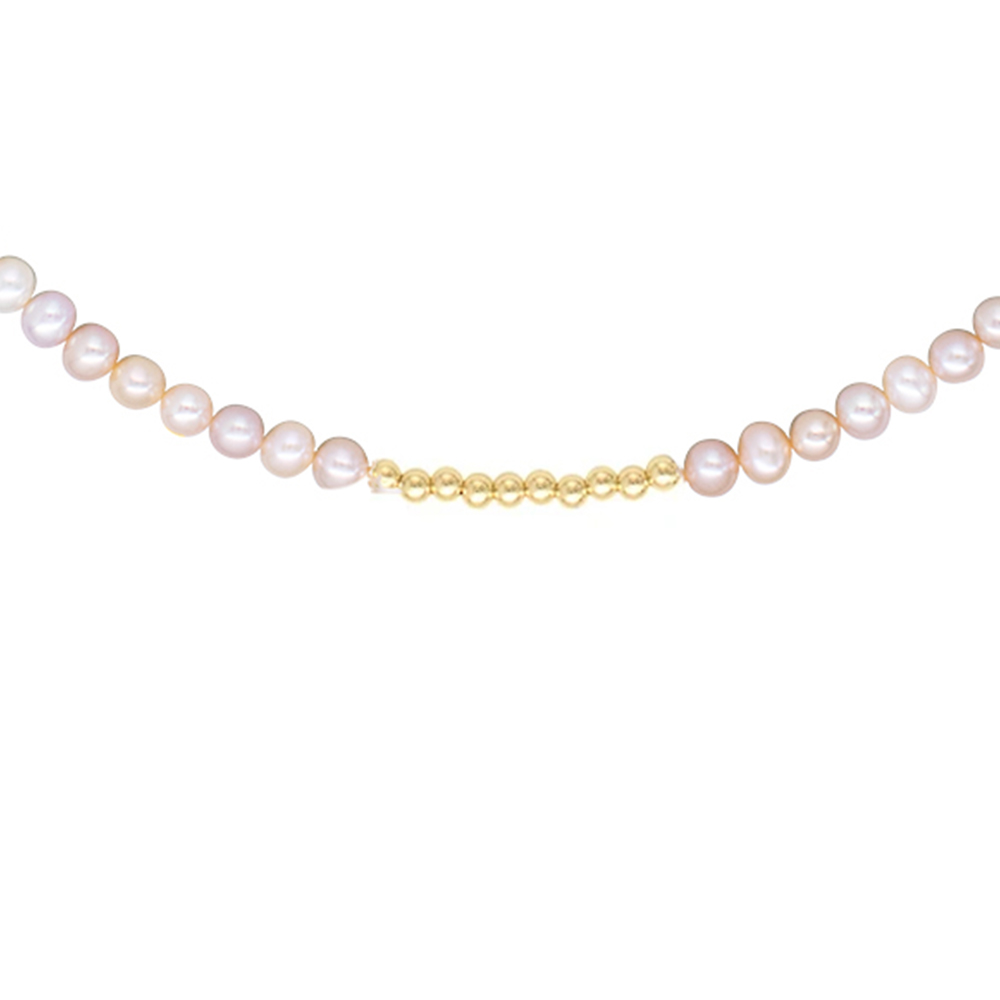 -12% Κολιέ με Κ14 χρυσά στοιχεία και σομόν μαργαριτάρια - M124386S