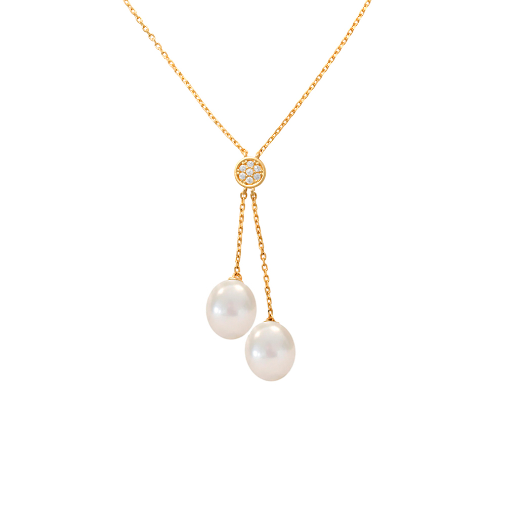 Η αλυσίδα καταλήγει σε δύο λαμπερά λευκά μαργαριτάρια γλυκού νερού, Fresh Water Pearls, σχήματος Long, διαμέτρου 8x11 χιλιοστών, άριστης ποιότητας.