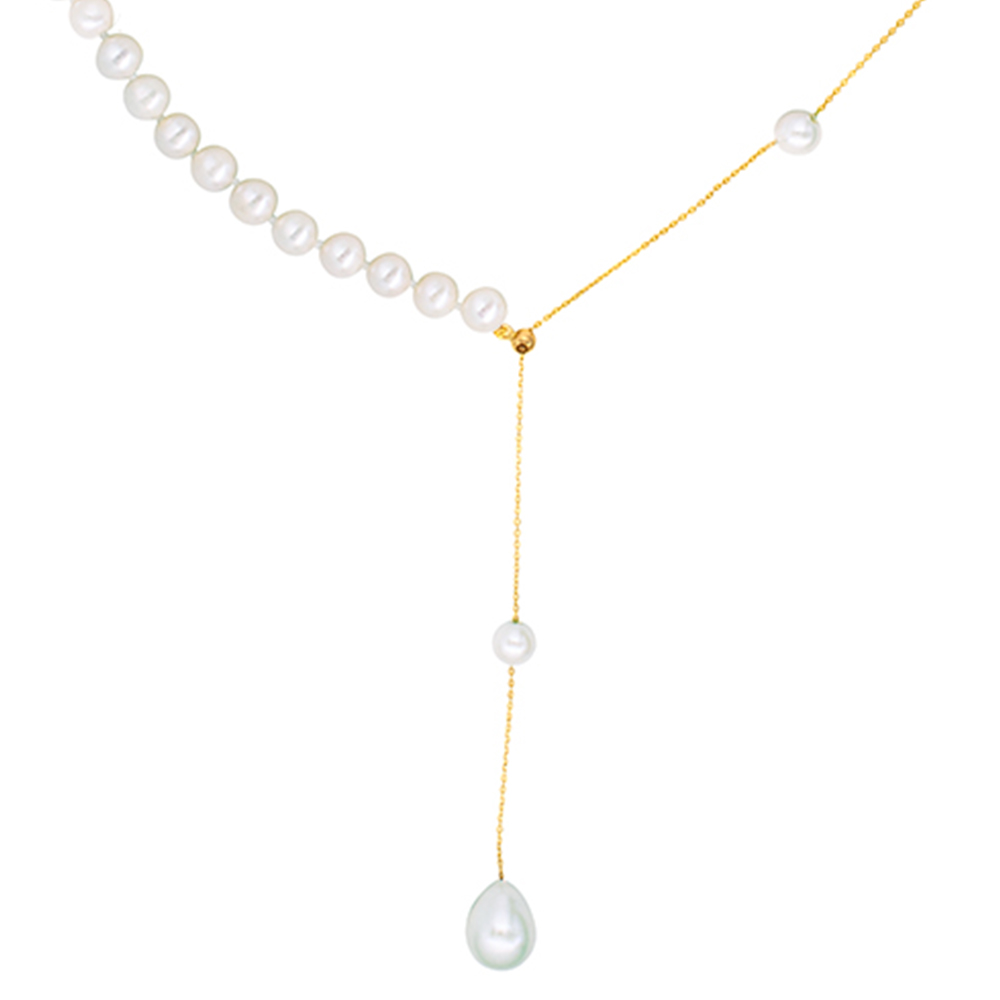 Το κολιέ καταλήγει σε ένα υπέροχο λευκό μαργαριτάρι γλυκού νερού Fresh Water Pearl σε σχήμα Drop, μεγέθους 11 χιλιοστών.