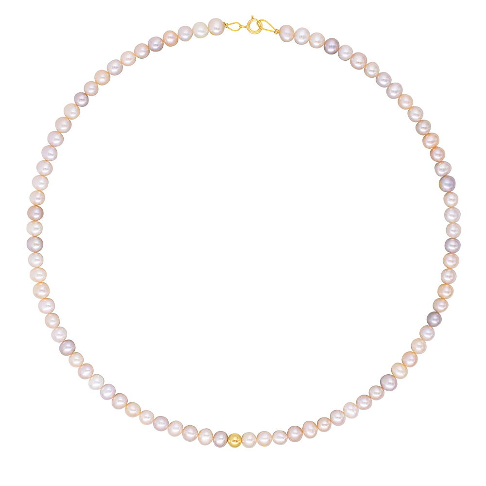 Κολιέ με Κ14 χρυσό κούμπωμα και σομόν μαργαριτάρια - M123673S