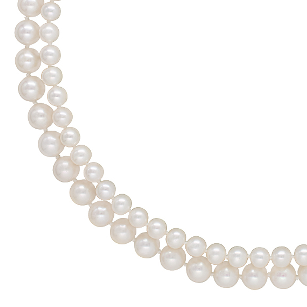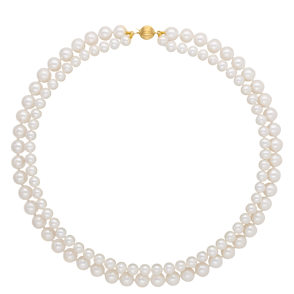 • Ένα υπέροχο κολιέ με 2 σειρές λευκά μαργαριτάρια Fresh Water Pearl διαμέτρου 6 και 8 χιλιοστών.
