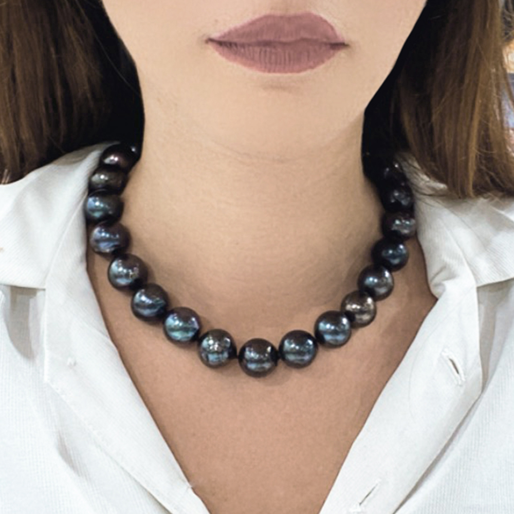 • Ένα υπέροχο κολιέ με μαύρα εντυπωσιακά πολύ μεγάλα μαργαριτάρια Fresh Water Pearl διαμέτρου 15 - 18 χιλιοστών.