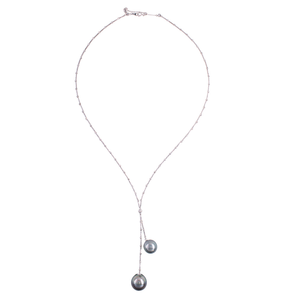 Κολιέ με Κ18 λευκόχρυσα στοιχεία και μαύρα μαργαριτάρια South Sea - F126564
