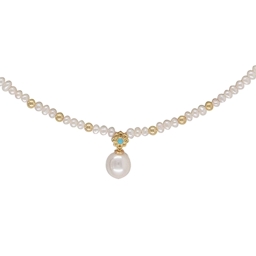 Κολιέ με Κ18 μενταγιόν, μαργαριτάρια και χρυσά στοιχεία - F125324