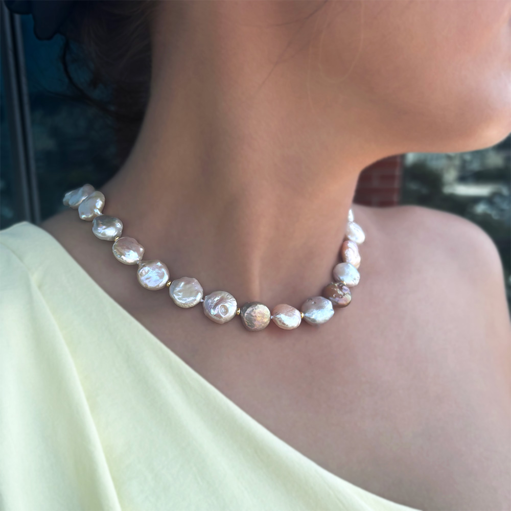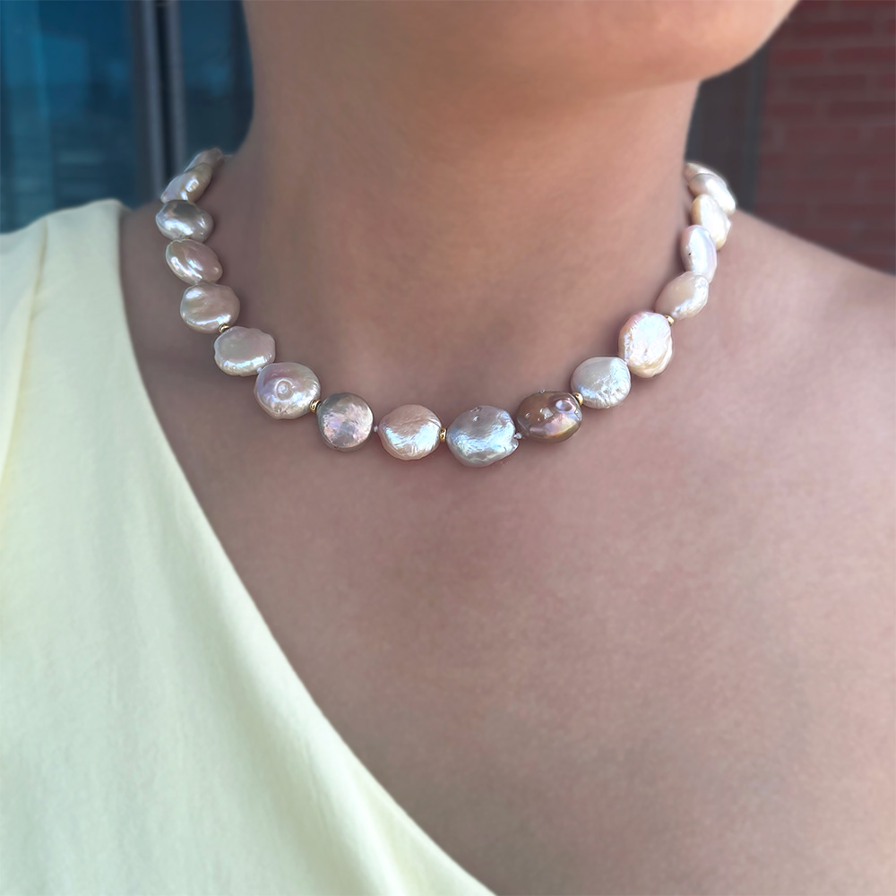 • Ένα υπέροχο κολιέ από εντυπωσιακά φυσικά και σπάνια πολύχρωμα μαργαριτάρια Keshi Fresh Water Pearl διαμέτρου 15 - 16 χιλιοστών σε σχήμα Baroque.