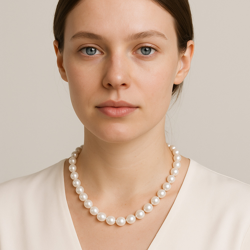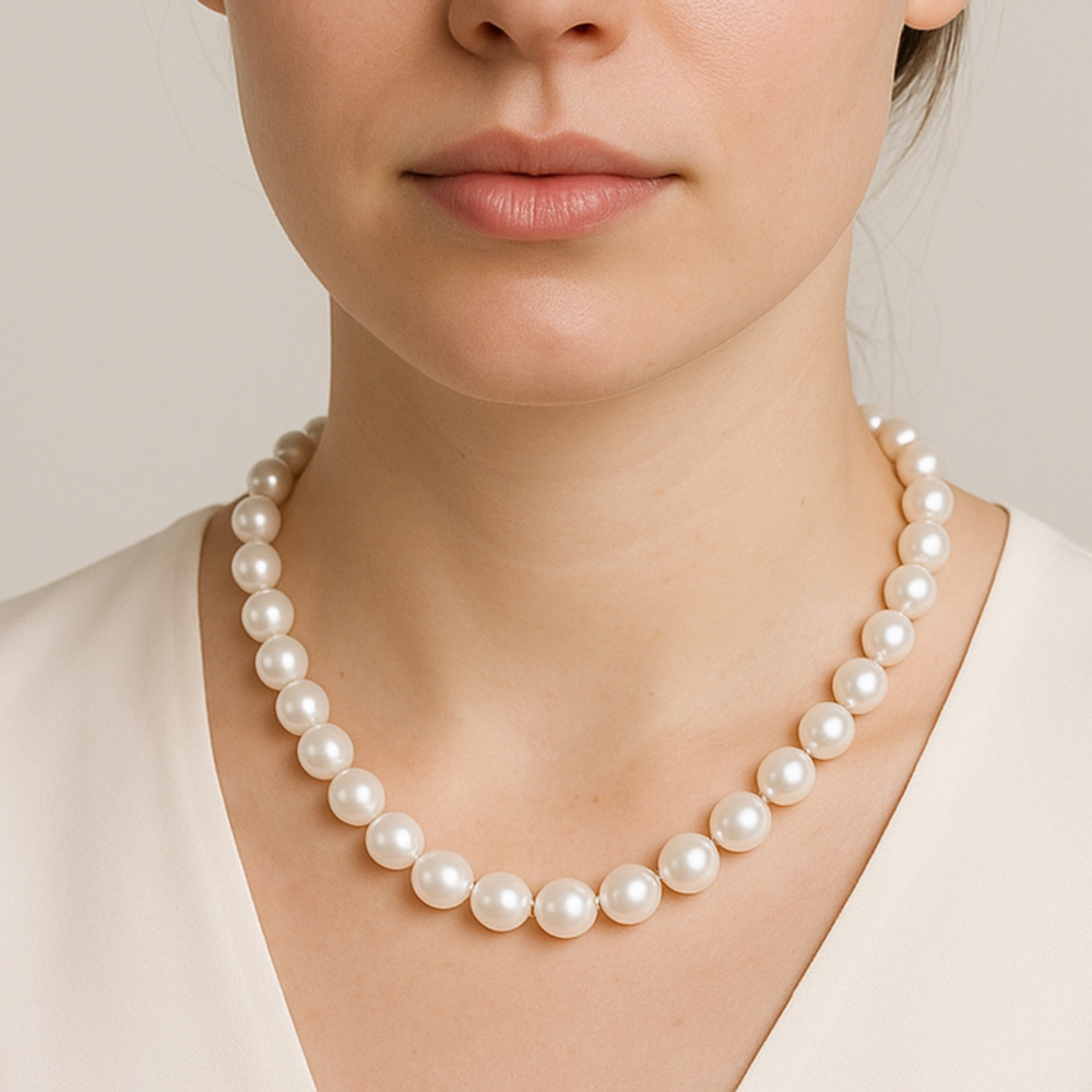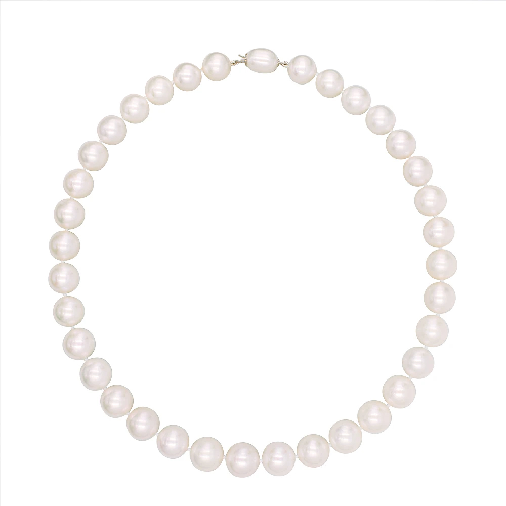 • Ένα υπέροχο κολιέ με λευκά και εντυπωσιακά μαργαριτάρια γλυκού νερού Fresh Water Pearl διαμέτρου 9-14 χιλιοστών.