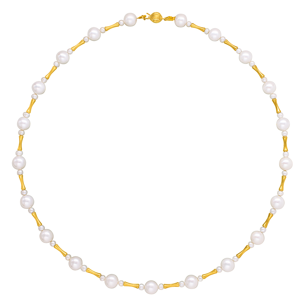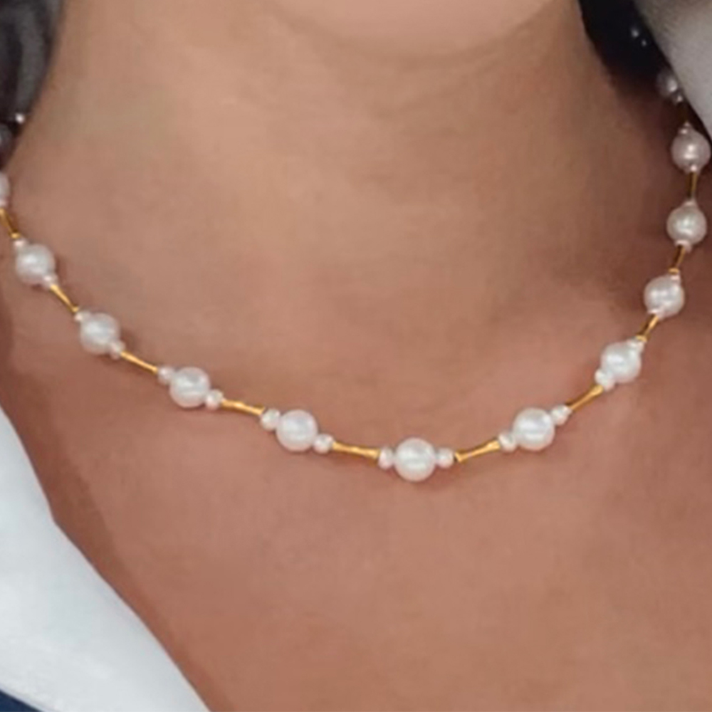 • Ένα φανταστικό κολιέ με 40 λευκά μαργαριτάρια γλυκού νερού Fresh Water Pearl διαμέτρου 3,5 -4 χιλιοστών και 21 λευκά μαργαριτάρια γλυκού νερού Fresh Water Pearl διαμέτρου 7,5-8 χιλιοστών άριστης ποιότητας σε σχήμα Round.