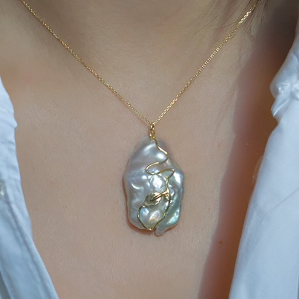 • Ένα υπέροχο μενταγιόν με φυσικό ακατέργαστο μαργαριτάρι Biwa Fresh Water Pearl διαμέτρου 32 x 20 χιλιοστών.