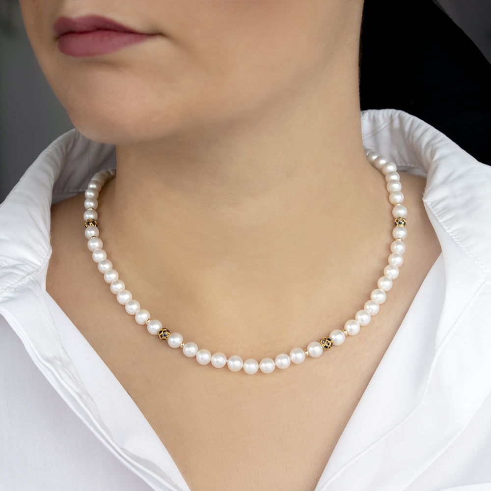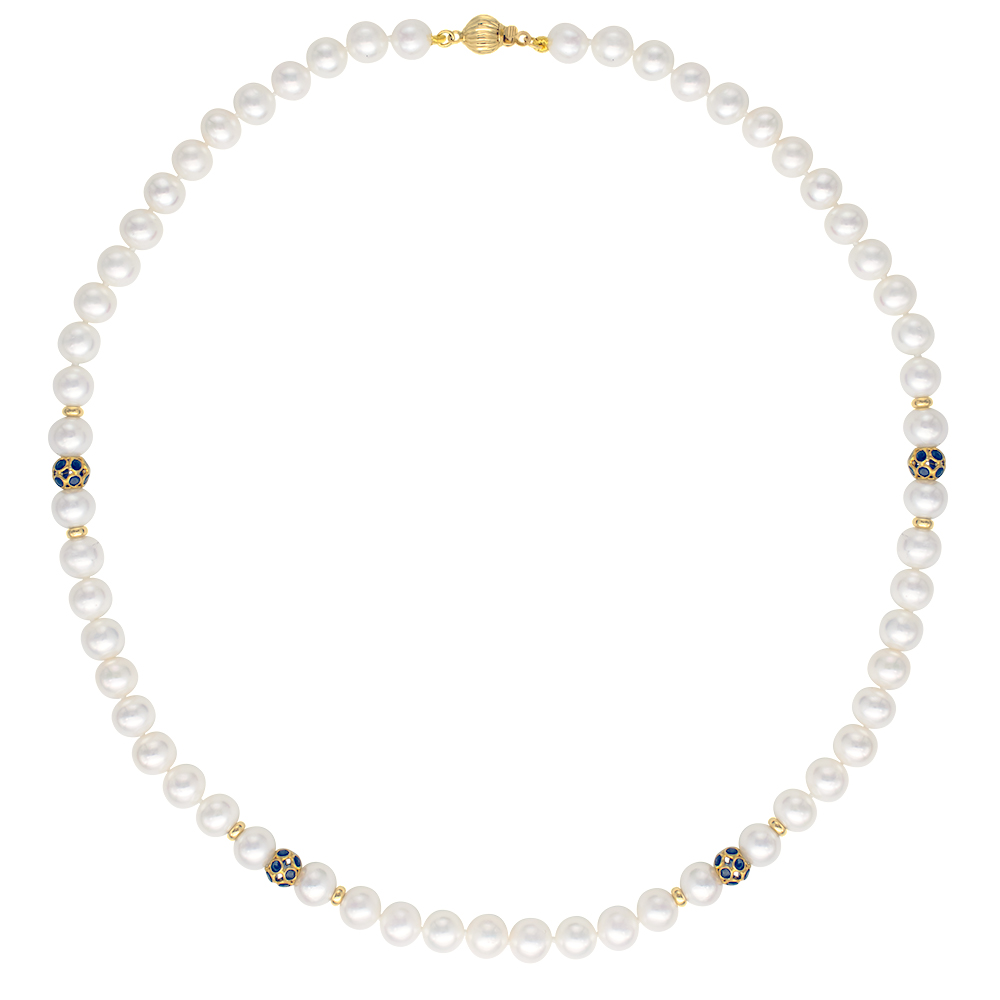 Κολιέ με Κ14 χρυσό κούμπωμα, λευκά μαργαριτάρια και ζαφείρια- F124649