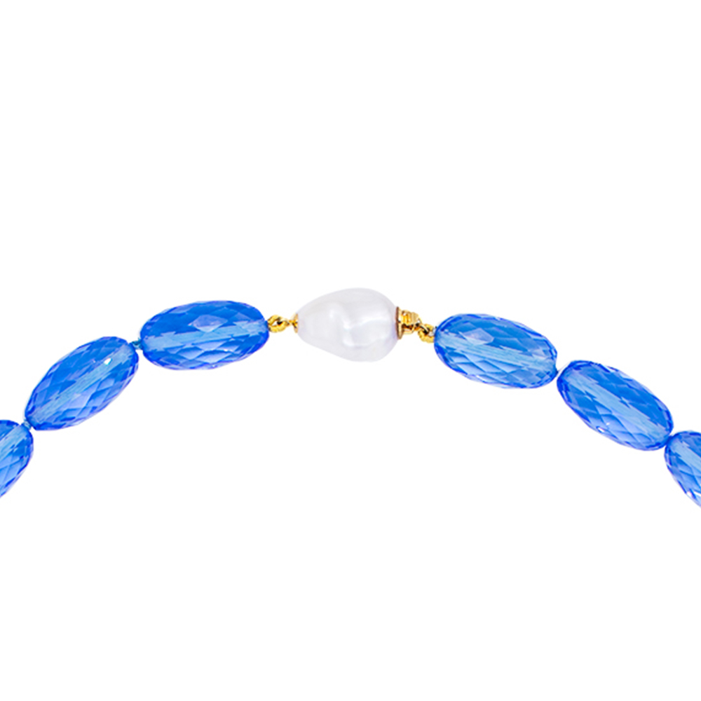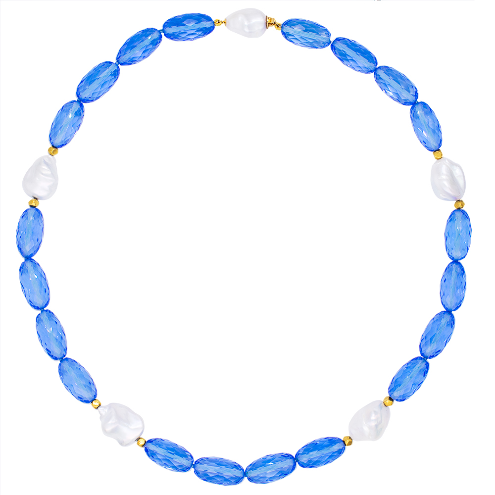 Κολιέ με Κ22 χρυσά στοιχεία, Blue Topaz και μαργαριτάρια Biwa - S124723