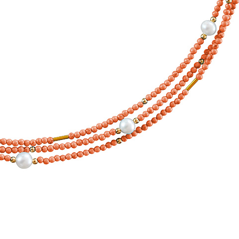 Κολιέ με  χρυσά στοιχεία Κ22, ανοιχτόχρωμο κοράλλι και μαργαριτάρια - M122605CA