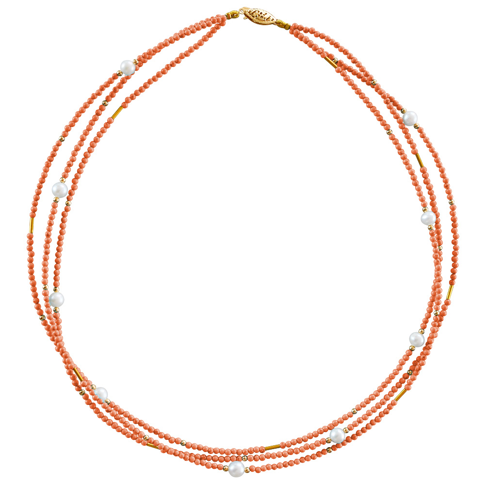 • Ένα υπέροχο κολιέ με 3 σειρές από ανοιχτόχρωμα κοράλλια διαμέτρου 2 - 2,5 χιλιοστών.