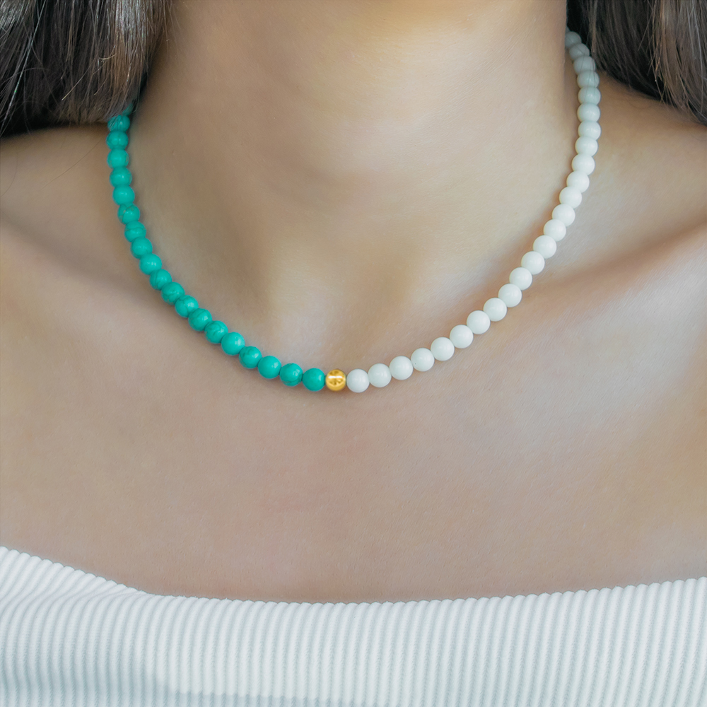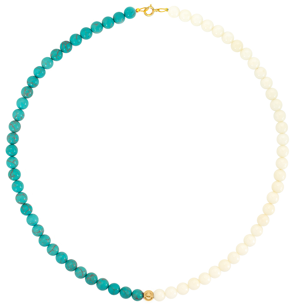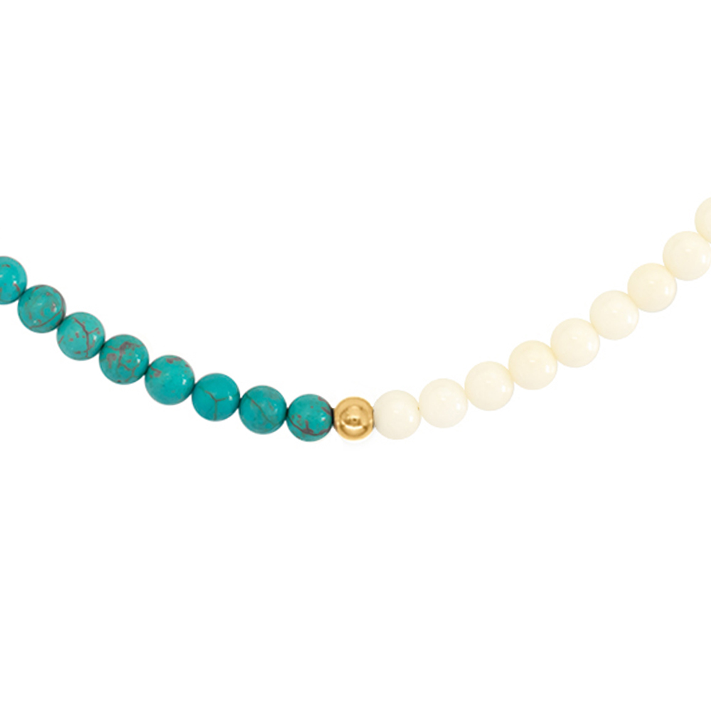 Κολιέ με Κ14 χρυσά στοιχεία, λευκά κοράλλια και τιρκουάζ - F124340C