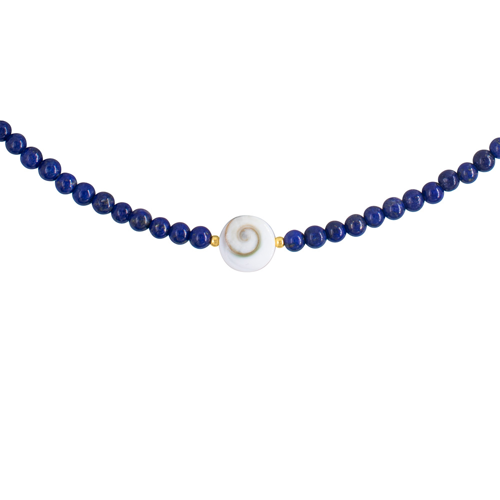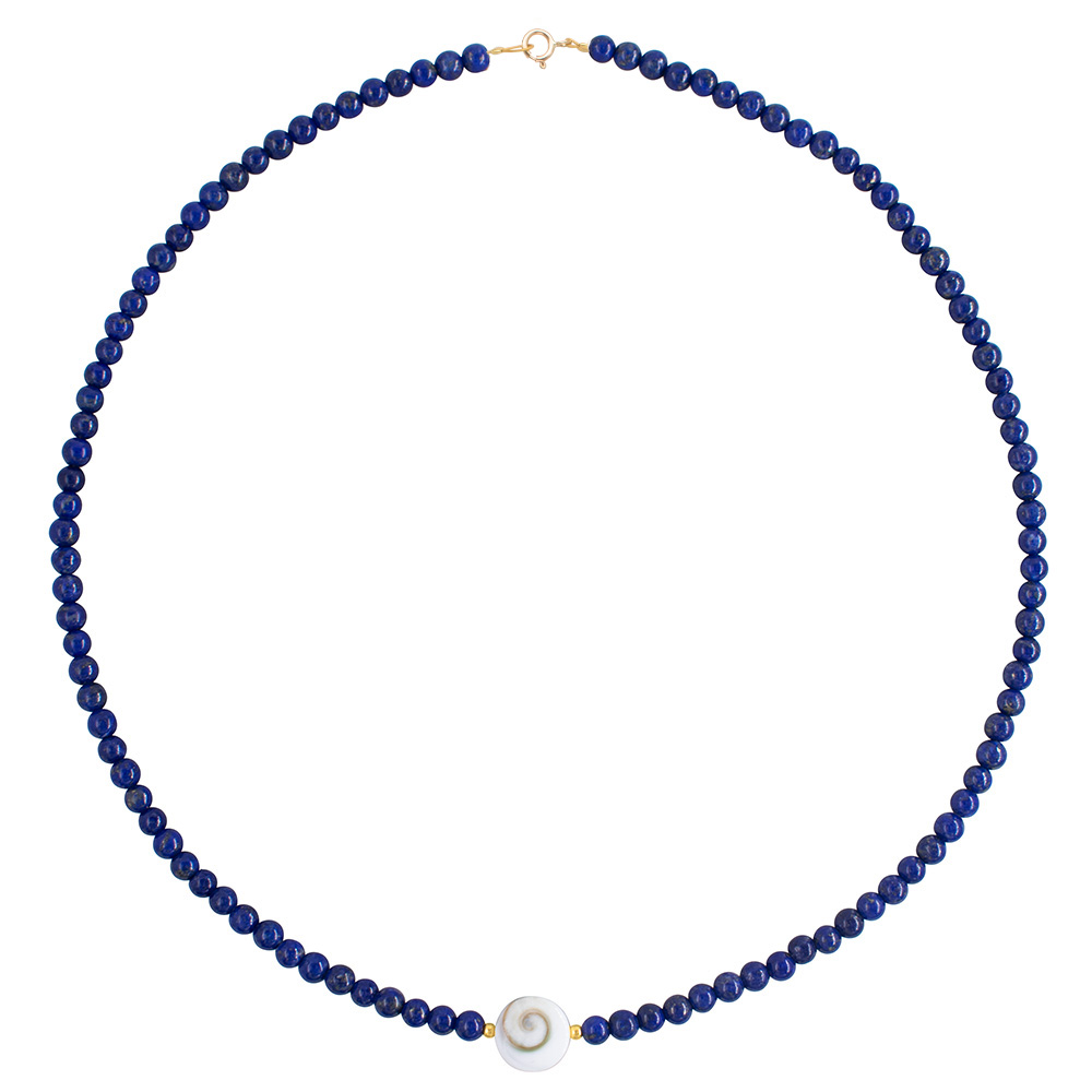 • Ένα υπέροχο κολιέ με στρόγγυλο ημιπολύτιμο λίθο λάπις λάζουλι διαμέτρου 4-4,5 χιλιοστών, λείας κοπής.