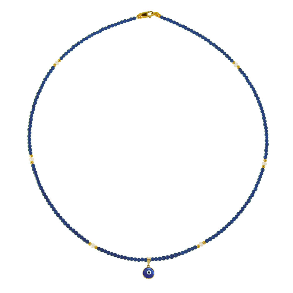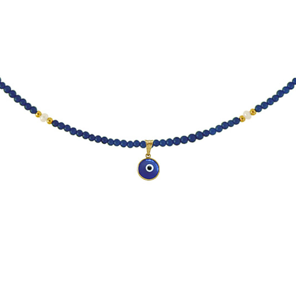 Κολιέ με λάπις λάζουλι και χρυσό μενταγιόν 14Κ - M320011L