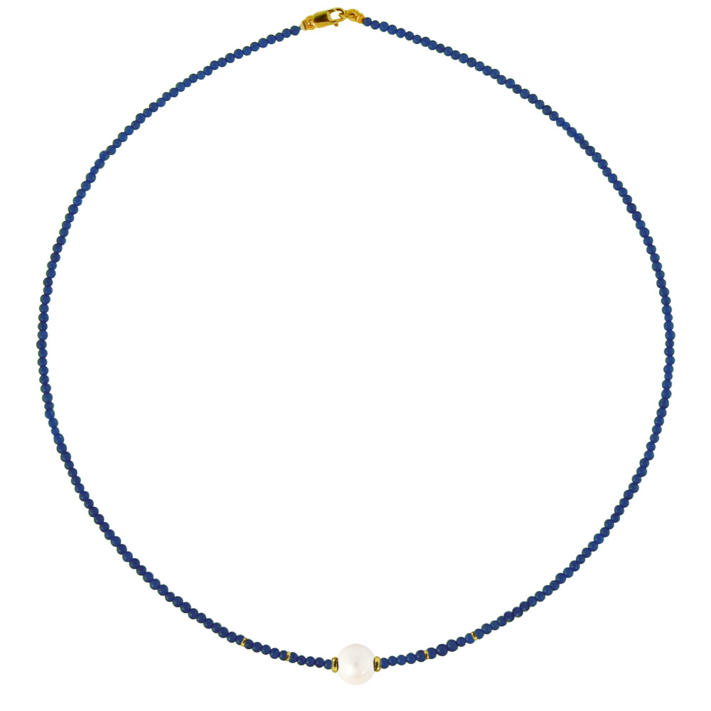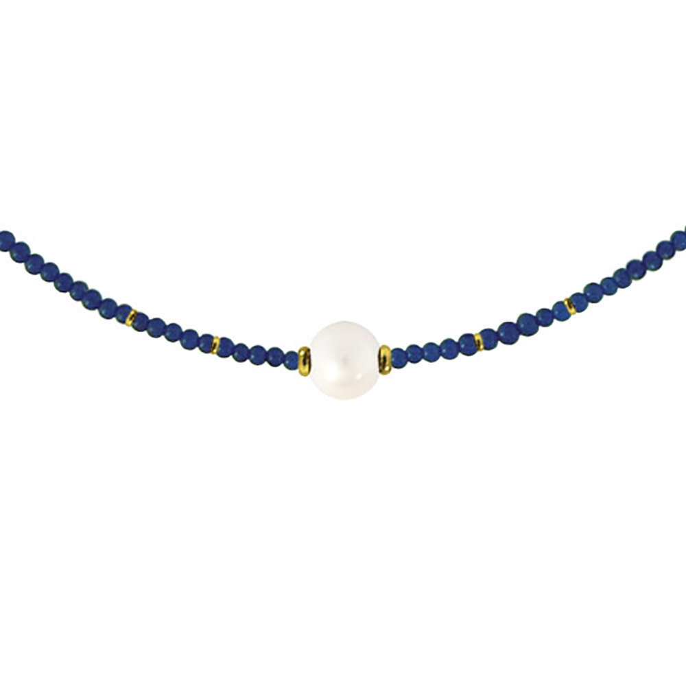 Κολιέ με λάπις λάζουλι, λευκό μαργαριτάρι και χρυσά στοιχεία 14K - M320294L