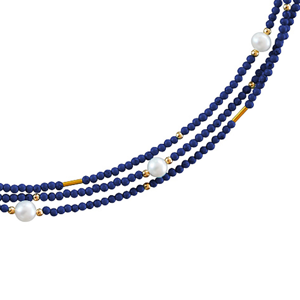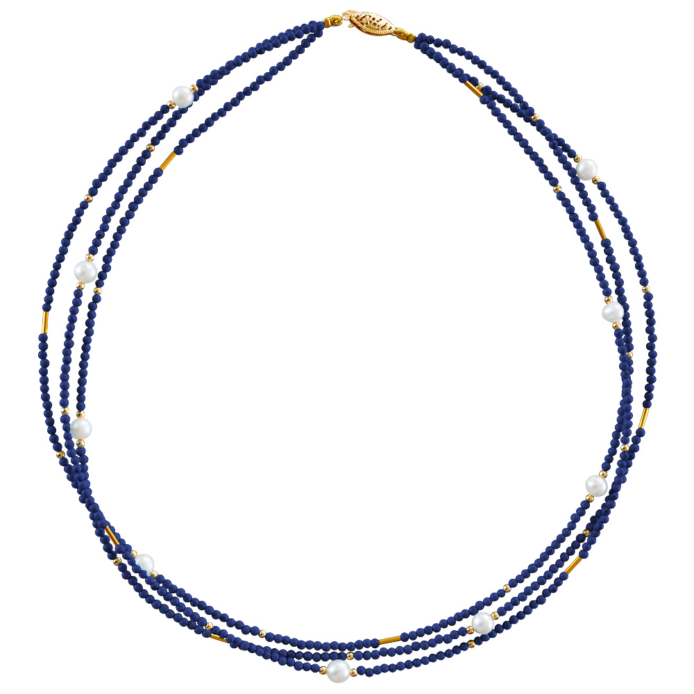Κολιέ με λάπις λάζουλι, μαργαριτάρια και χρυσά στοιχεία Κ22 - M122605L