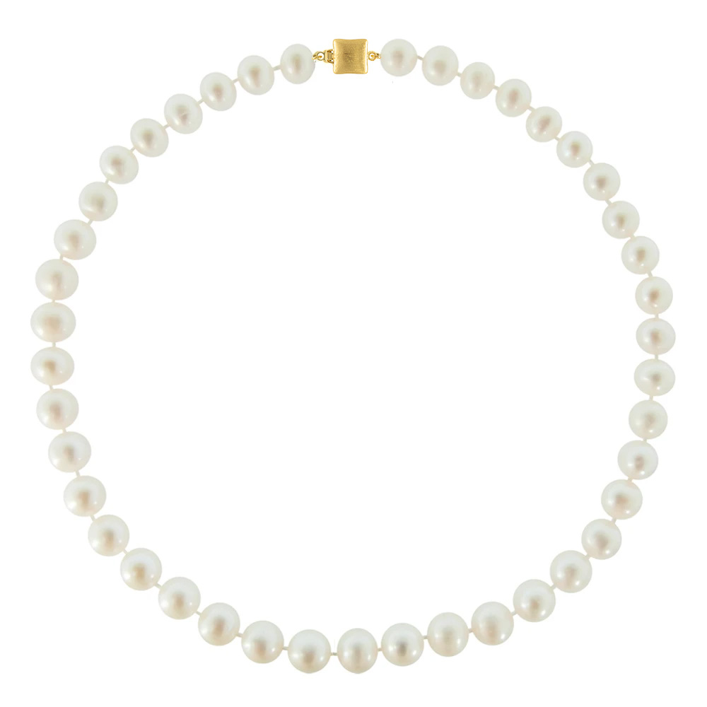 Κολιέ με Κ14 χρυσό κούμπωμα και λευκά μαργαριτάρια 10-11mm - F126002