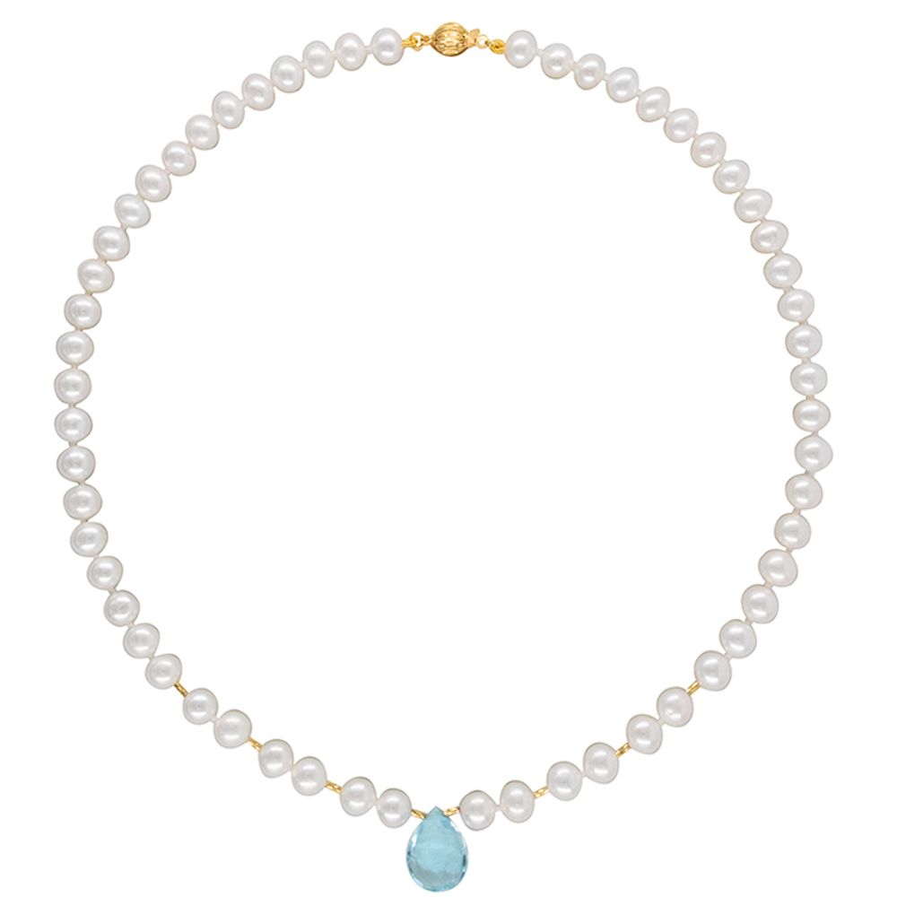 Κολιέ με λευκά μαργαριτάρια, aqua και χρυσά στοιχεία Κ18 - M125383