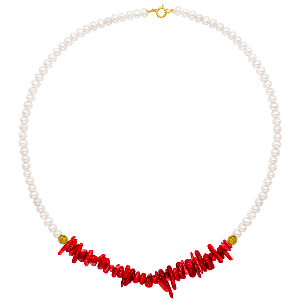 Κολιέ με μαργαριτάρια, κοράλλια και ασημένιο κούμπωμα 925 - S124385