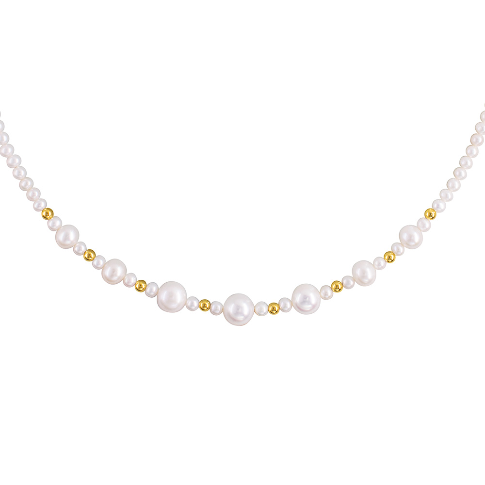 Κολιέ με Κ14 χρυσά στοιχεία και λευκά μαργαριτάρια - F126574