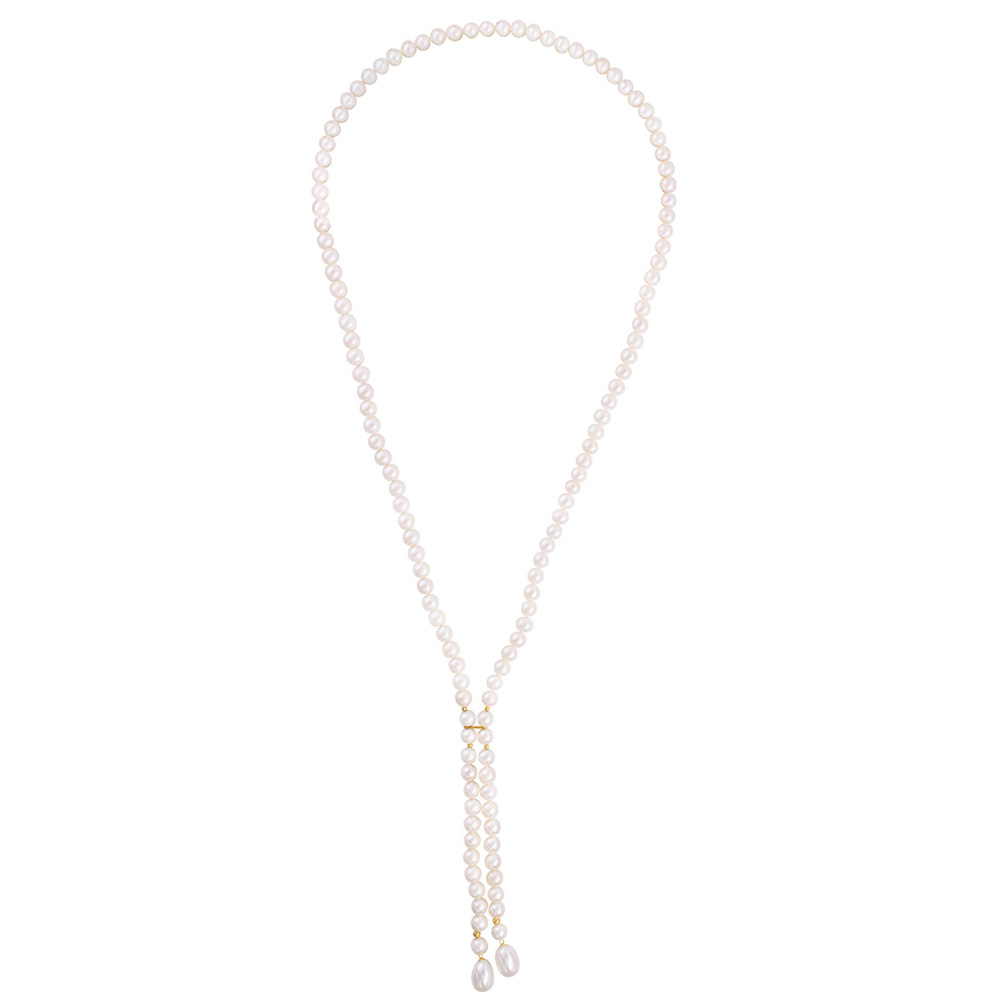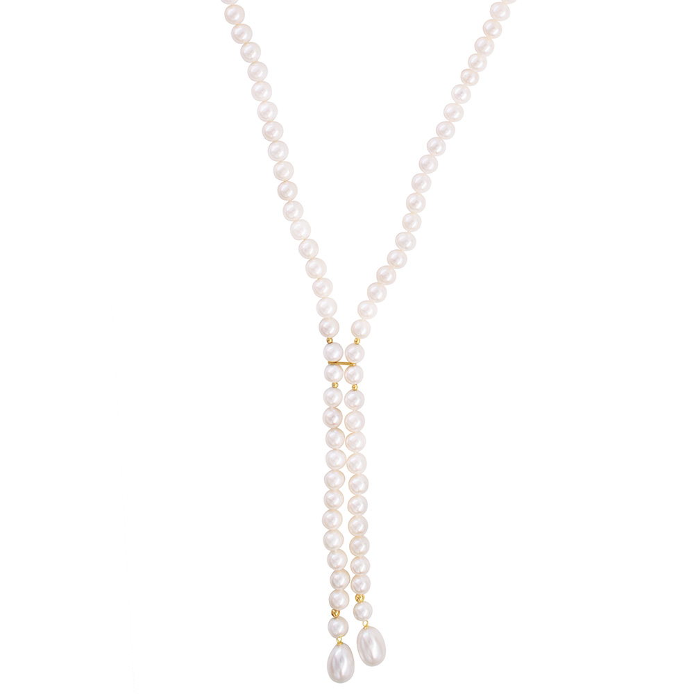 Το κολιέ καταλήγει σε 2 εντυπωσιακά λευκά μαργαριτάρια Long με ιδιαίτερους φυσικούς ιριδισμούς.