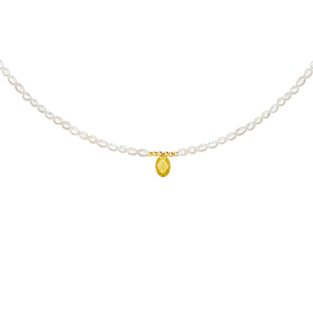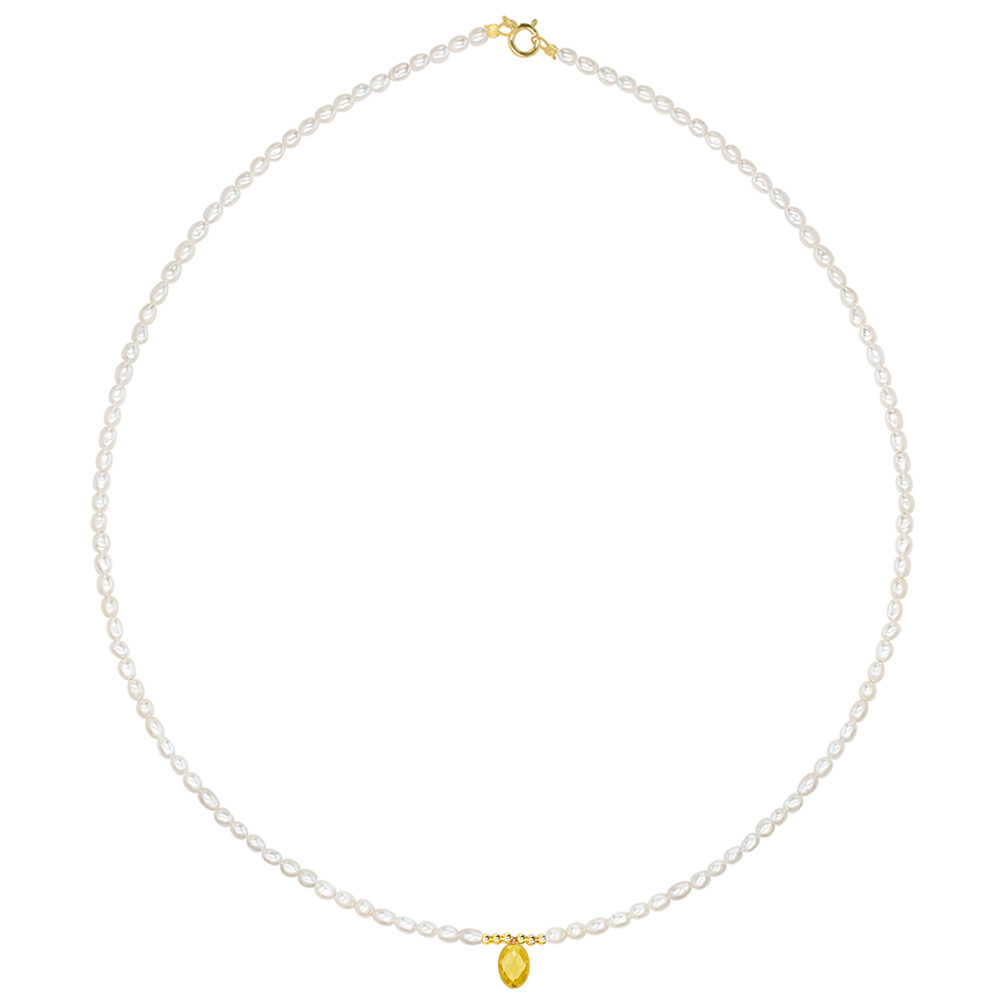 Κολιέ με Κ14 χρυσά στοιχεία, λευκά μαργαριτάρια και citrine - F124312C