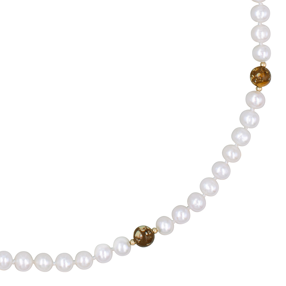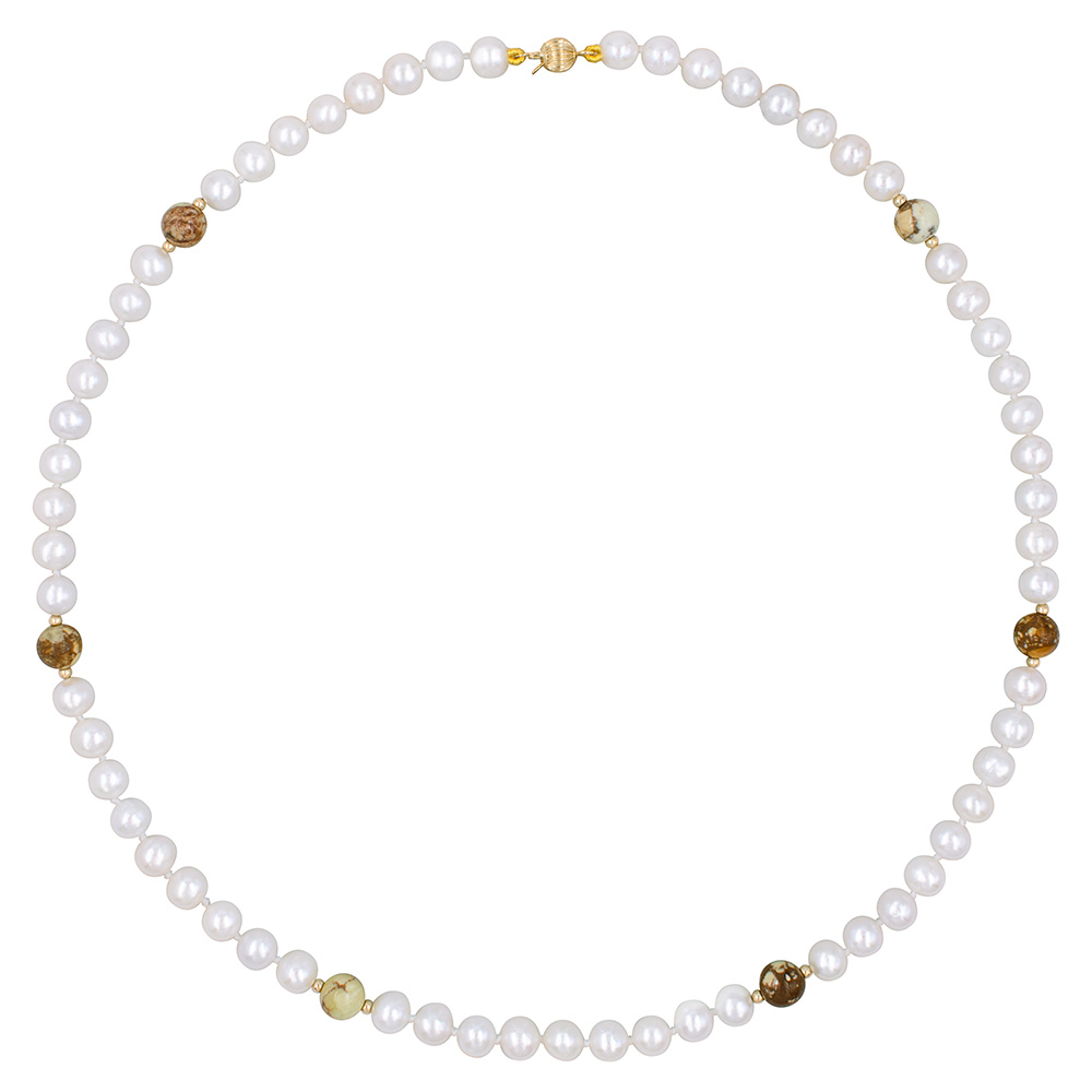 Κολιέ με Κ14 χρυσά στοιχεία, μαργαριτάρια και jasper - F1252292