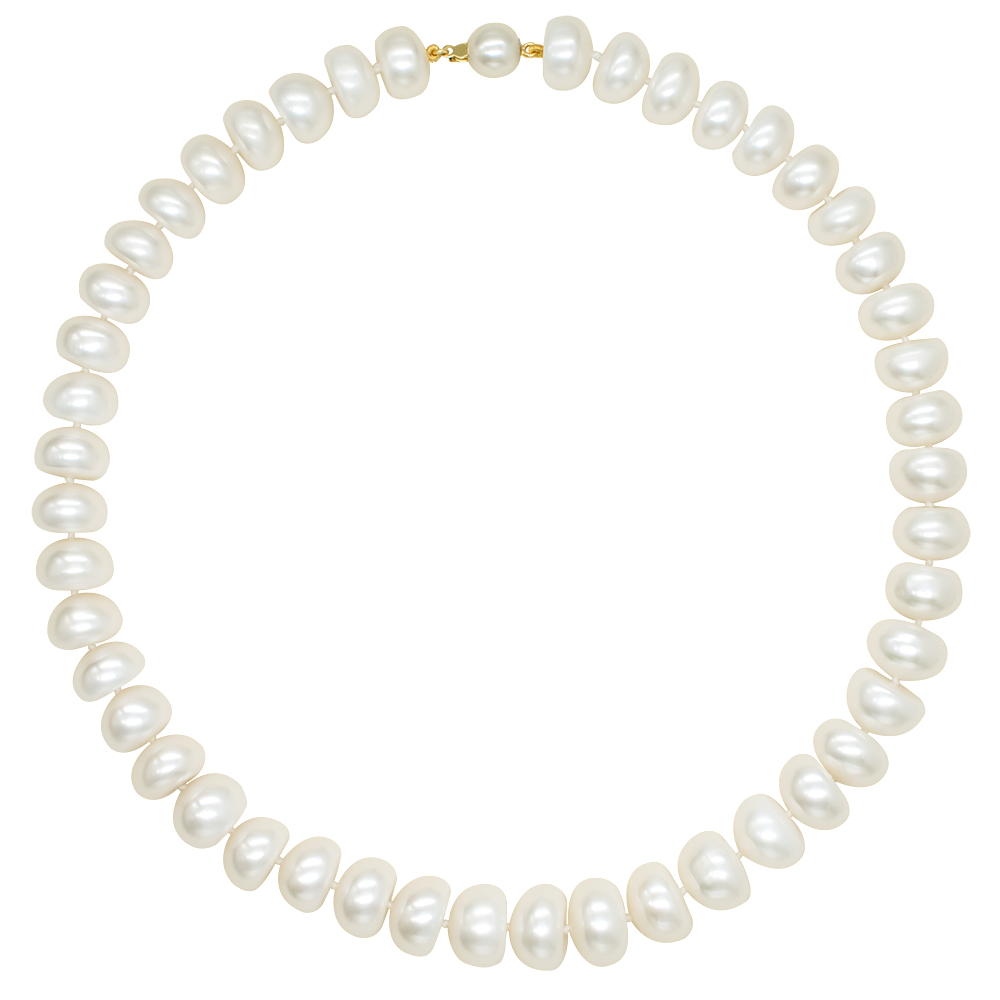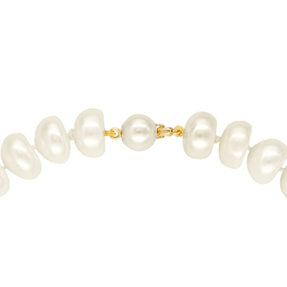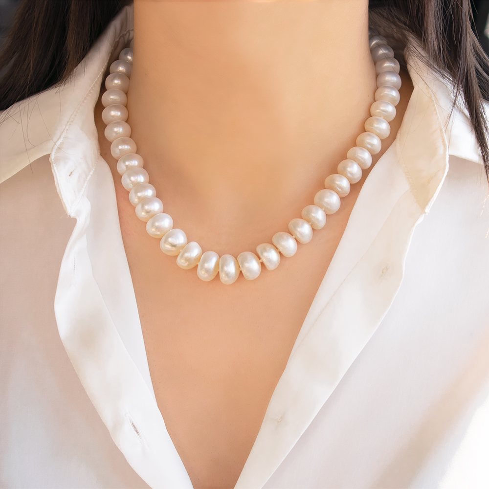 • Ένα υπέροχο κολιέ με λευκά μεγάλα μαργαριτάρια Fresh Water Pearl διαμέτρου 12 x 14 χιλιοστών σε σχήμα Center.