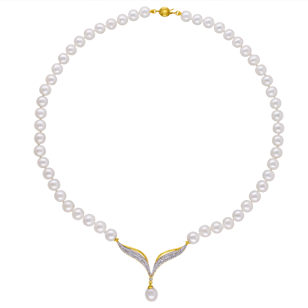 • Ένα εντυπωσιακό και μοναδικό κολιέ με λευκά μαργαριτάρια Fresh Water Pearl διαμέτρου 8 χιλιοστών σε σχήμα στρογγυλό.