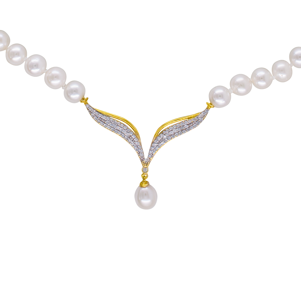 Κολιέ με Κ14 χρυσό κούμπωμα, λευκά μαργαριτάρια και ζιργκόν - F125493