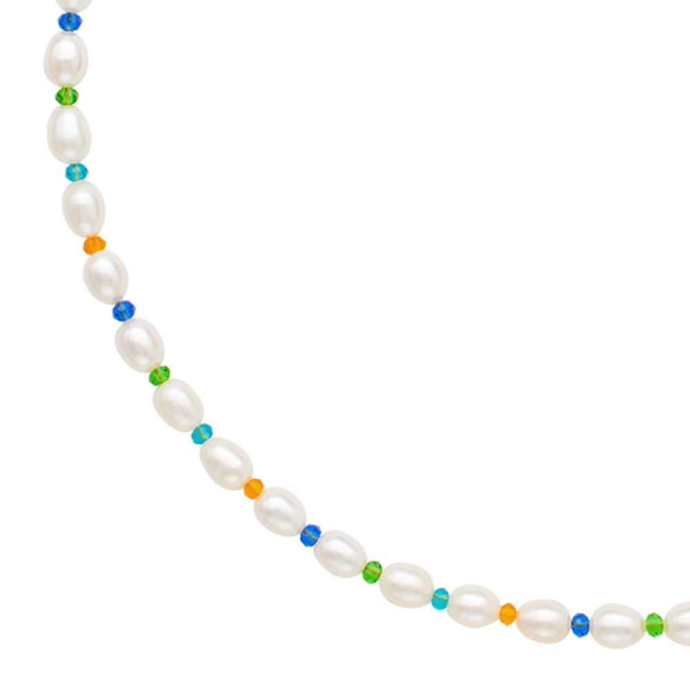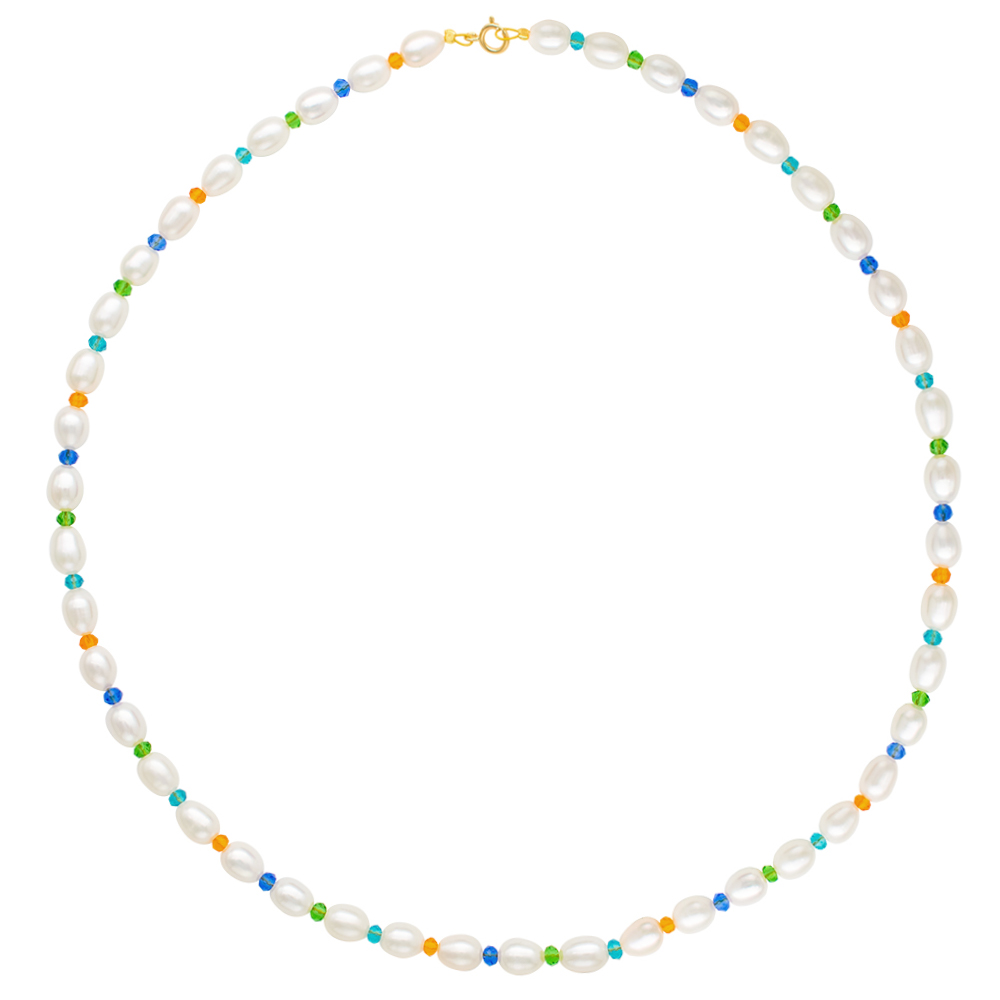 Κολιέ με Κ14 χρυσό κούμπωμα, μαργαριτάρια και ζιργκόν - F124332M