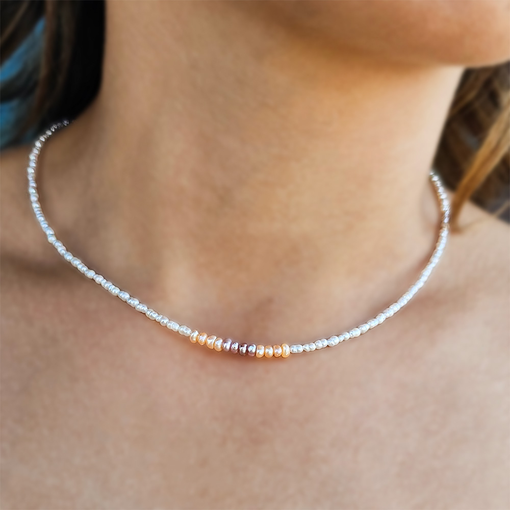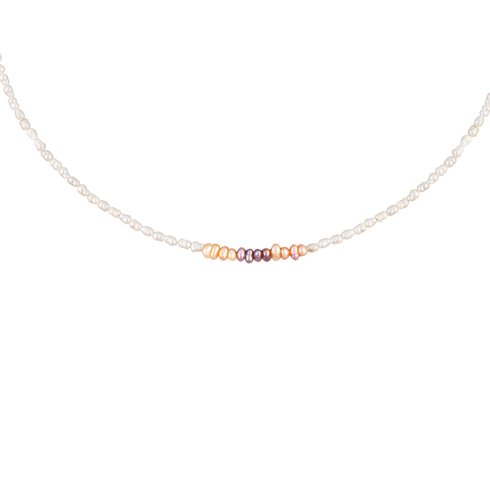 -24% Κολιέ με Κ14 χρυσό κούμπωμα, λευκά και πολύχρωμα μαργαριτάρια - F126437