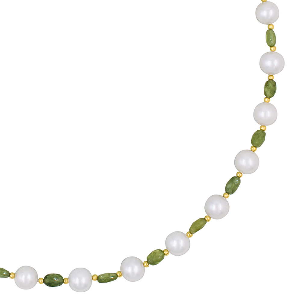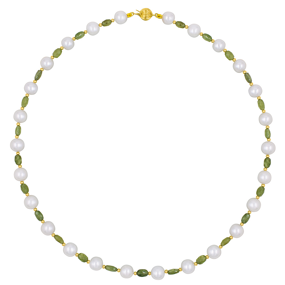Κολιέ με Κ14 χρυσά στοιχεία, λευκά μαργαριτάρια και πράσινα ζαφείρια - F126855