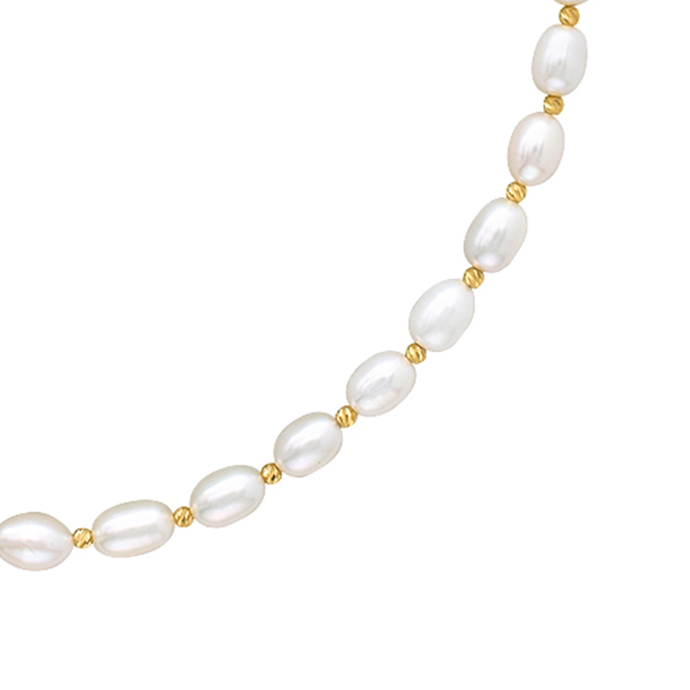 Κολιέ με λευκά μαργαριτάρια και χρυσά στοιχεία Κ14- M125401