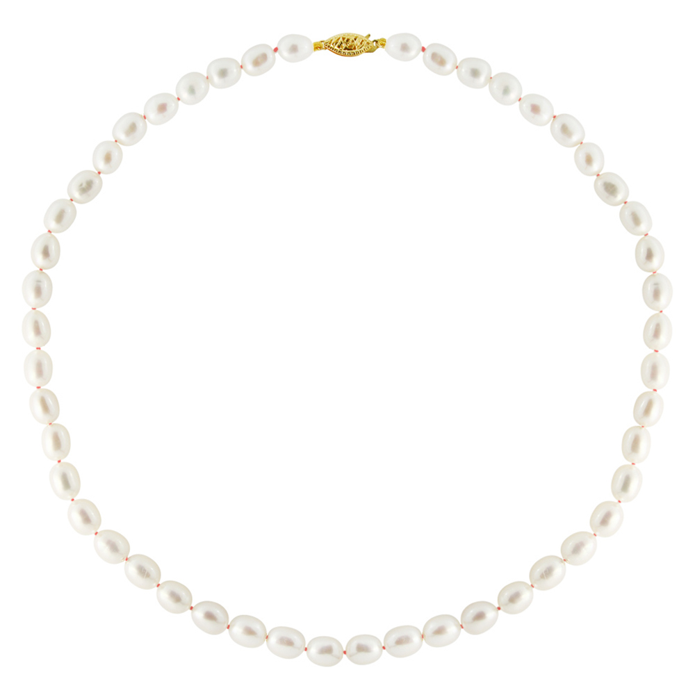 • Ένα υπέροχο κολιέ με λευκά μαργαριτάρια γλυκού νερού Fresh Water Pearl διαμέτρου 6x7 χιλιοστών, σε σχήμα Long.