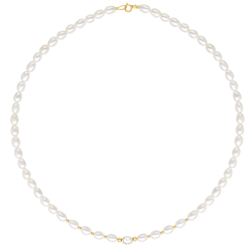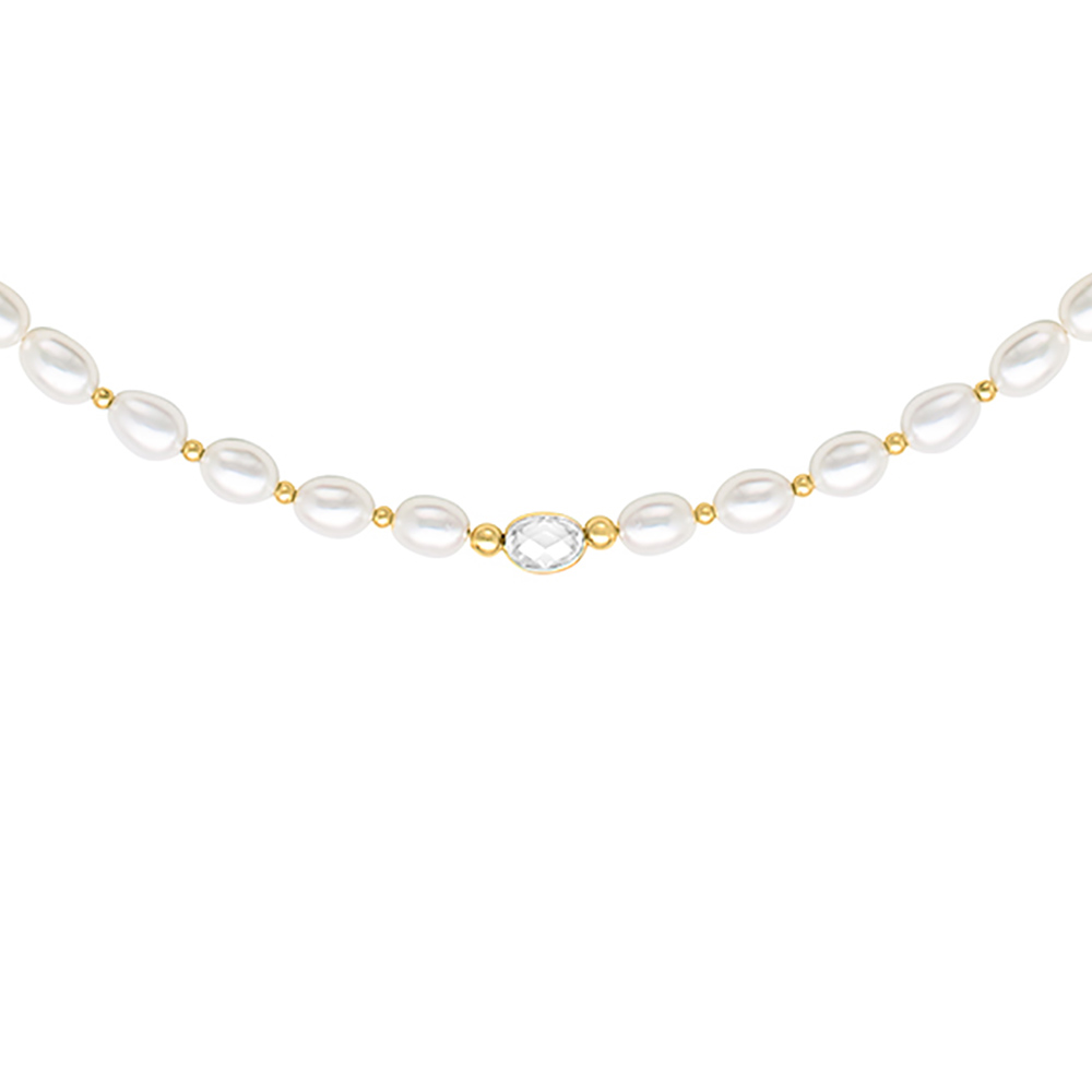 Κολιέ με Κ14 χρυσό κούμπωμα, λευκά μαργαριτάρια, crystal και χρυσά στοιχεία Κ14 - F124564CR