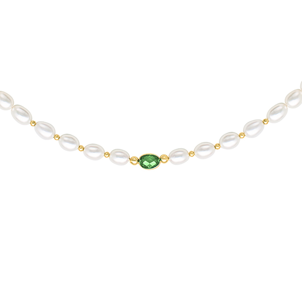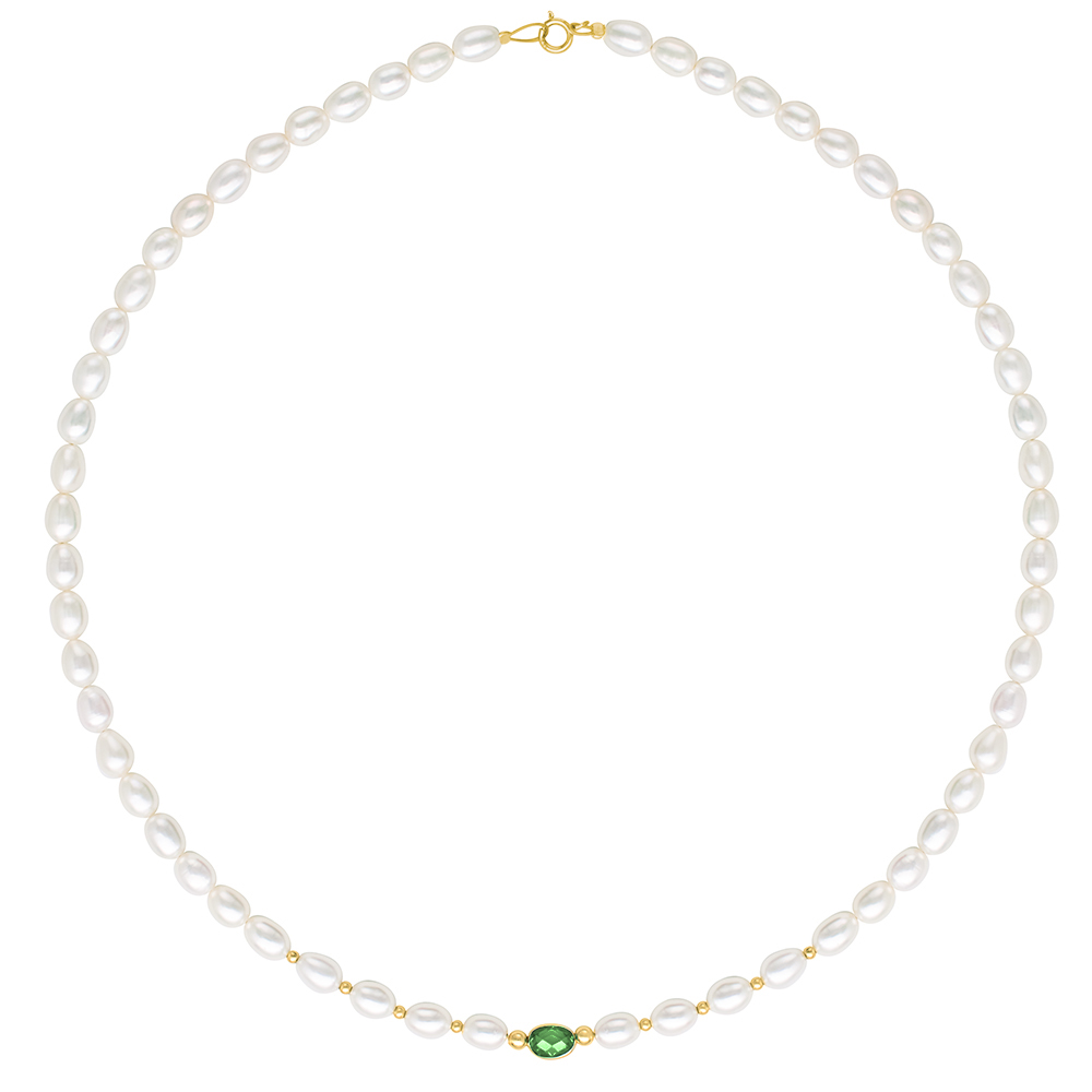 Κολιέ με Κ14 χρυσό κούμπωμα, λευκά μαργαριτάρια, περίδοτο και χρυσά στοιχεία Κ14 - F124564P