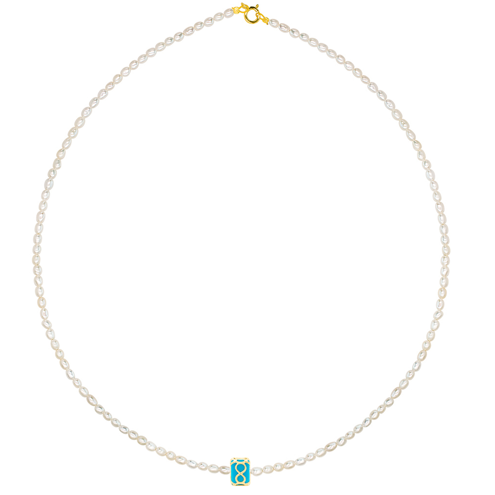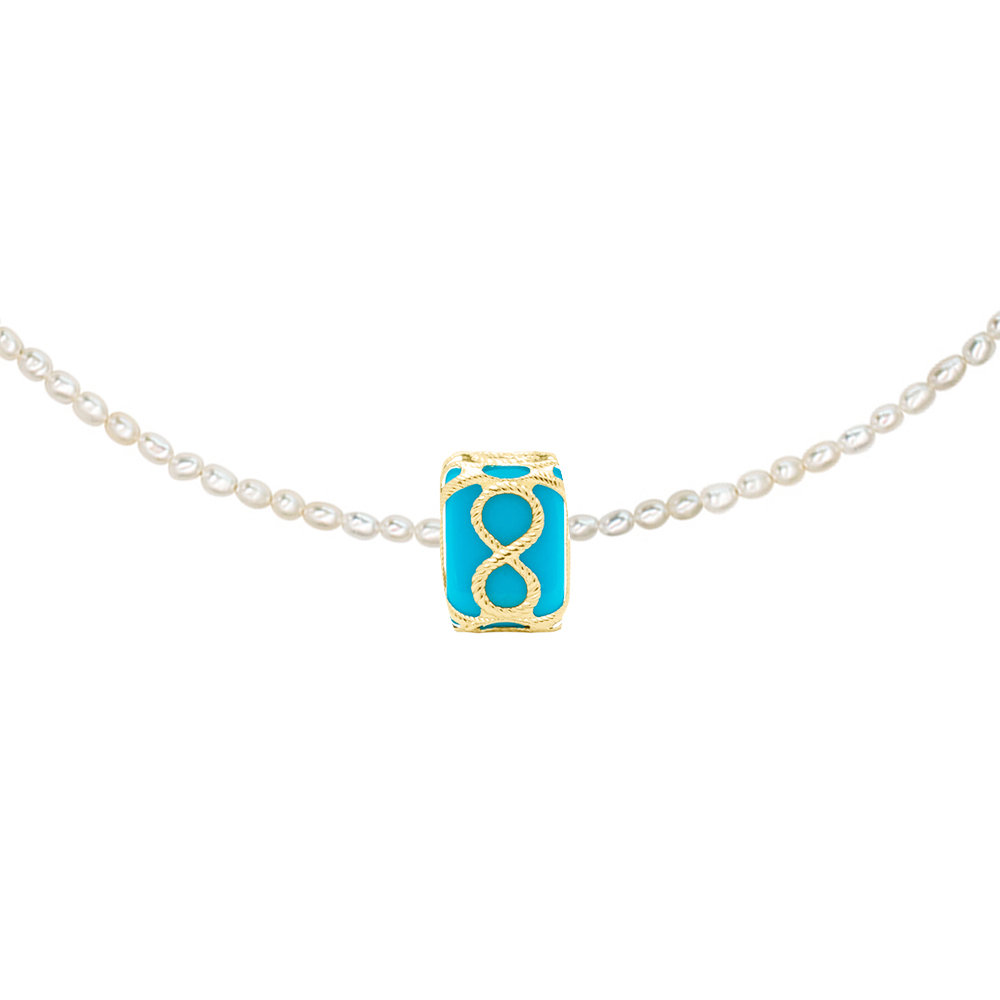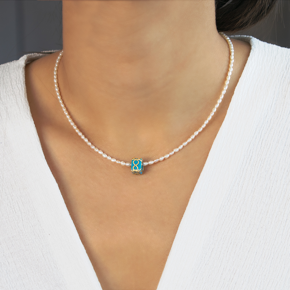 Κολιέ με Κ14 χρυσό κούμπωμα, μαργαριτάρια και μενταγιόν άπειρο - F124276A