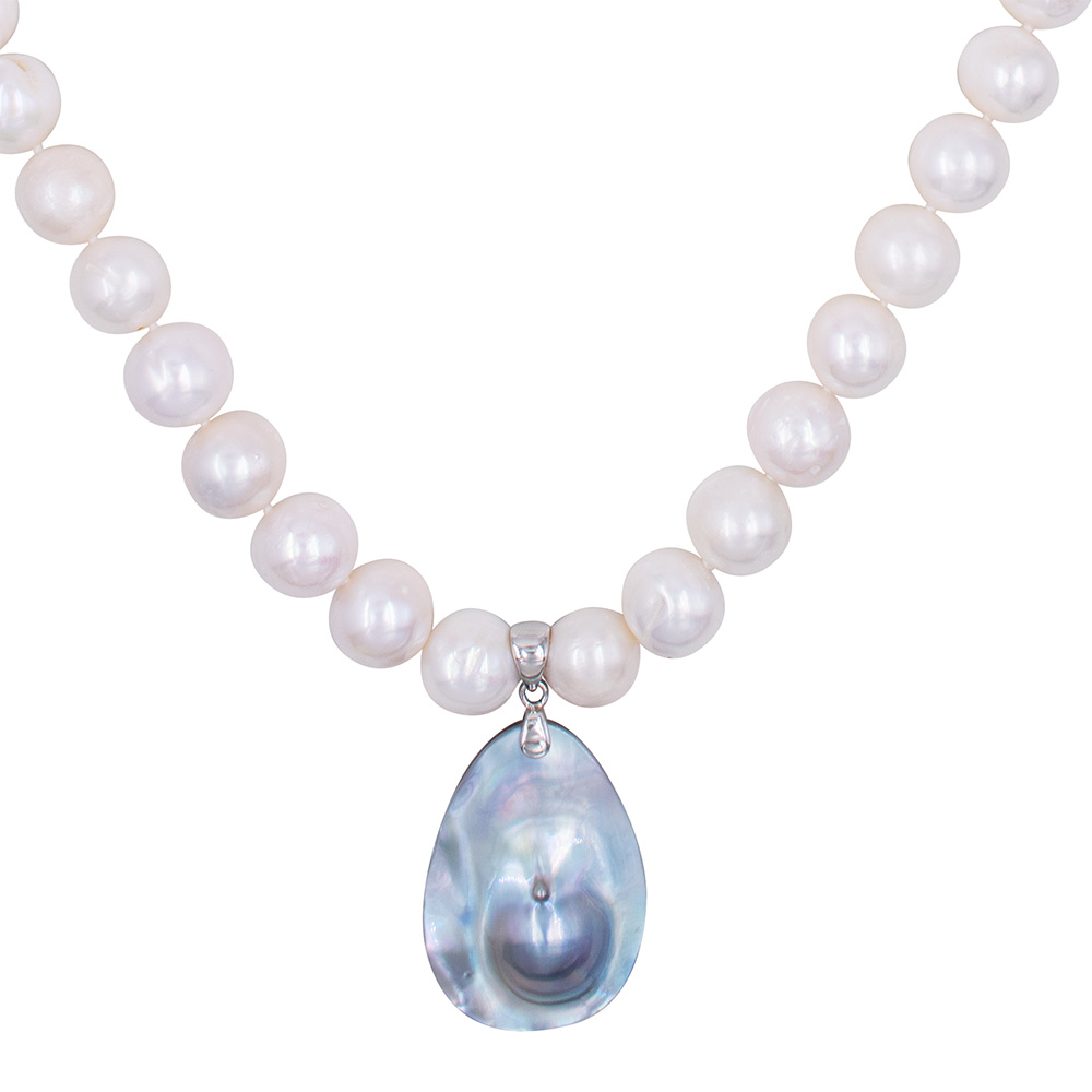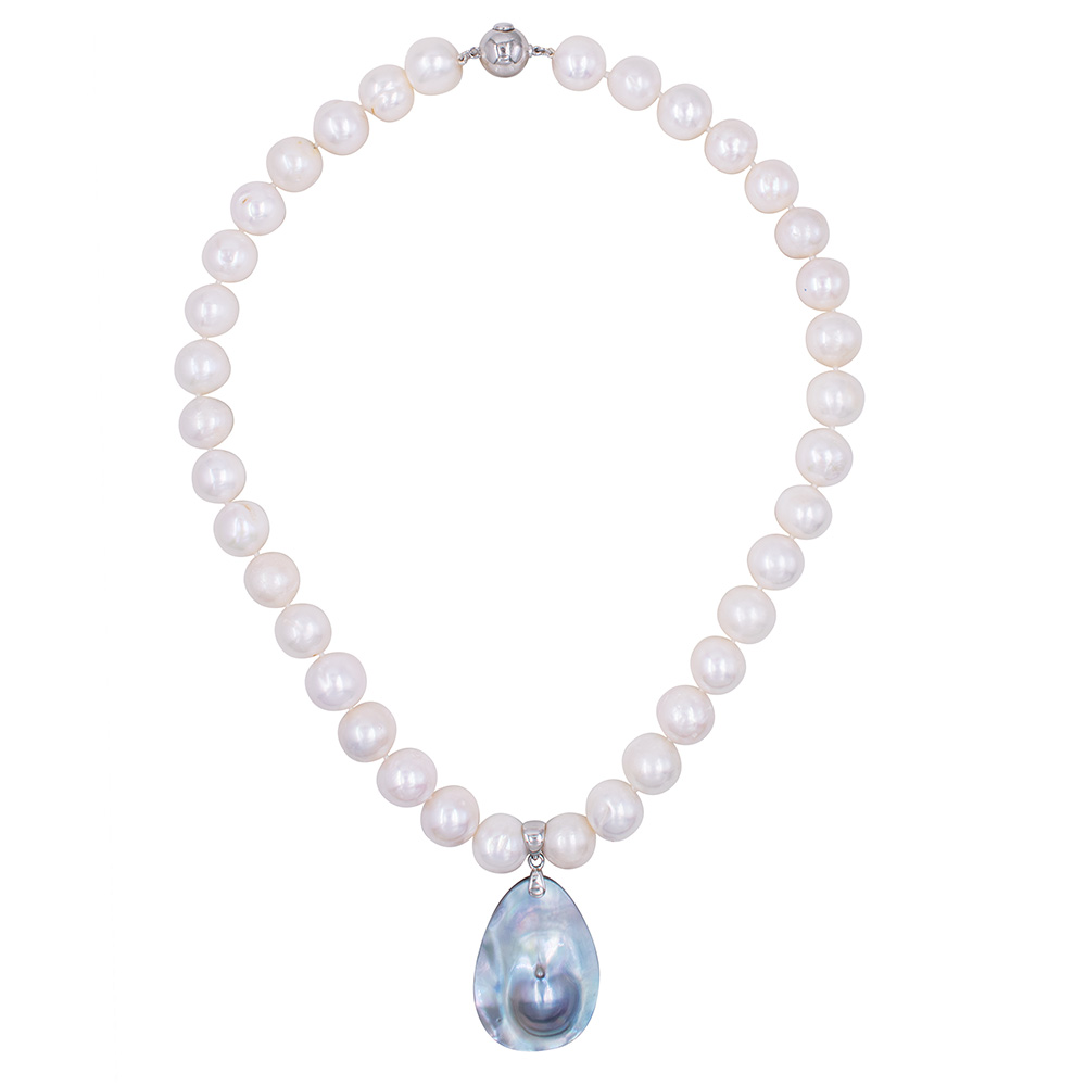 Κολιέ με 925 ασημένιο κούμπωμα, λευκά μαργαριτάρια και μενταγιόν Mother of Pearl - S126817