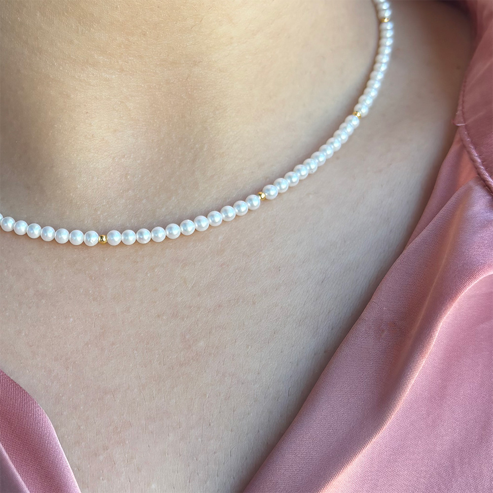 Κολιέ με Κ14 χρυσά στοιχεία και λευκά στρόγγυλα μαργαριτάρια - F126308