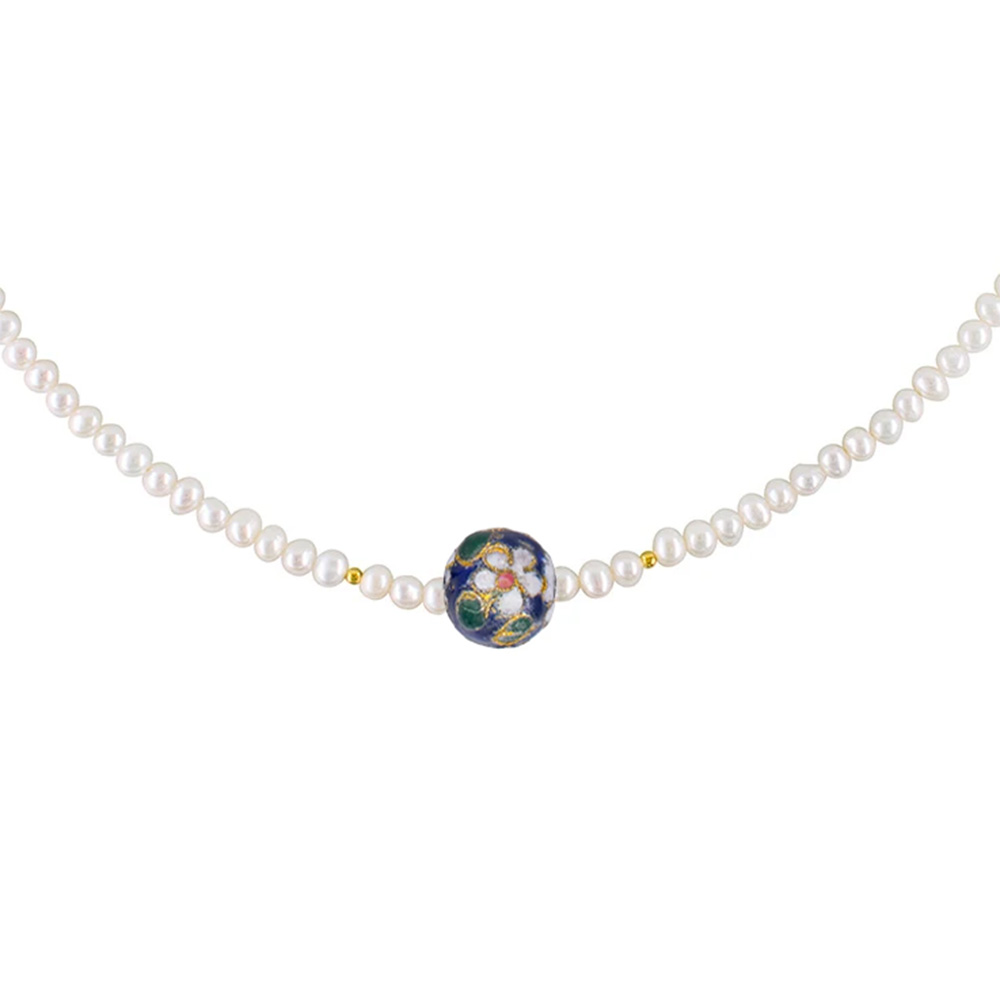 Κολιέ με Κ14 χρυσά στοιχεία και μενταγιόν cloisonne - F1252284