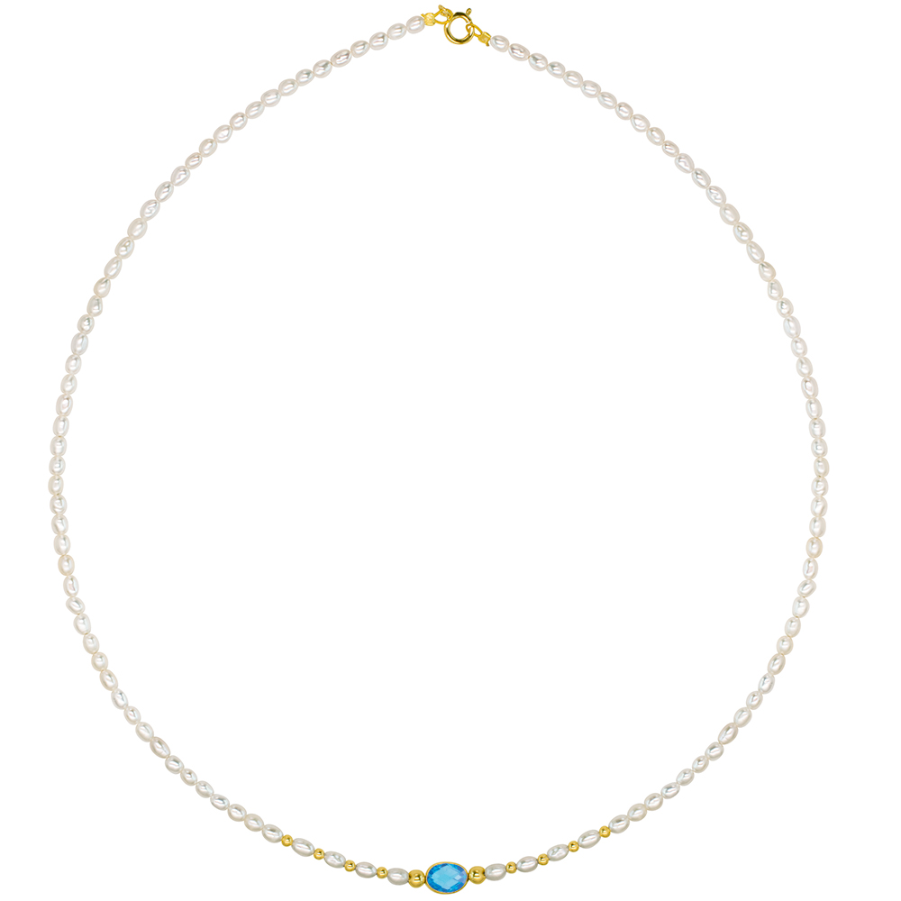 Κολιέ Κ14 χρυσό με λευκά μαργαριτάρια, blue topaz και χρυσά στοιχεία Κ14 - F124152
