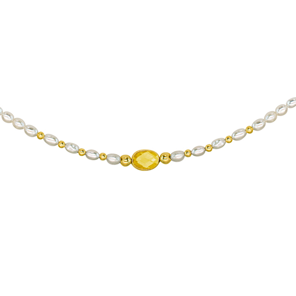 Κολιέ Κ14 χρυσό με λευκά μαργαριτάρια, citrine και χρυσά στοιχεία Κ14 - F124152C