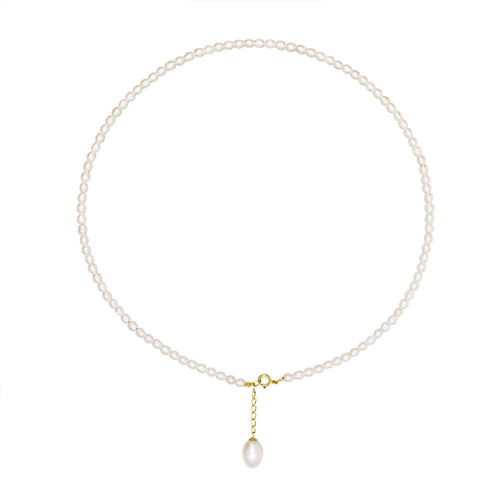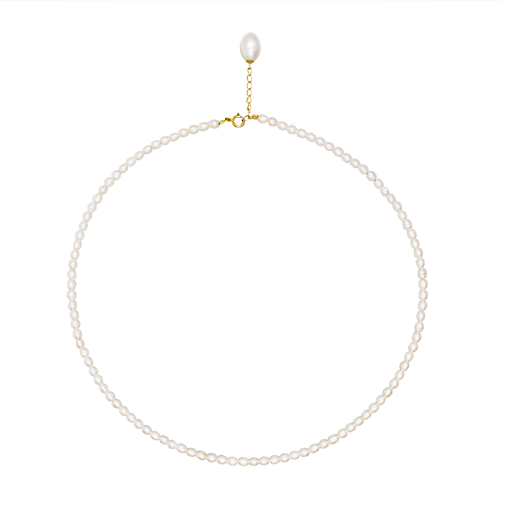 • Ένα υπέροχο κολιέ με λευκά μαργαριτάρια γλυκού νερού Fresh Water Pearl διαστάσεων 4x6 χιλιοστά, άριστης ποιότητας.