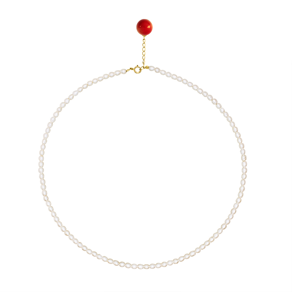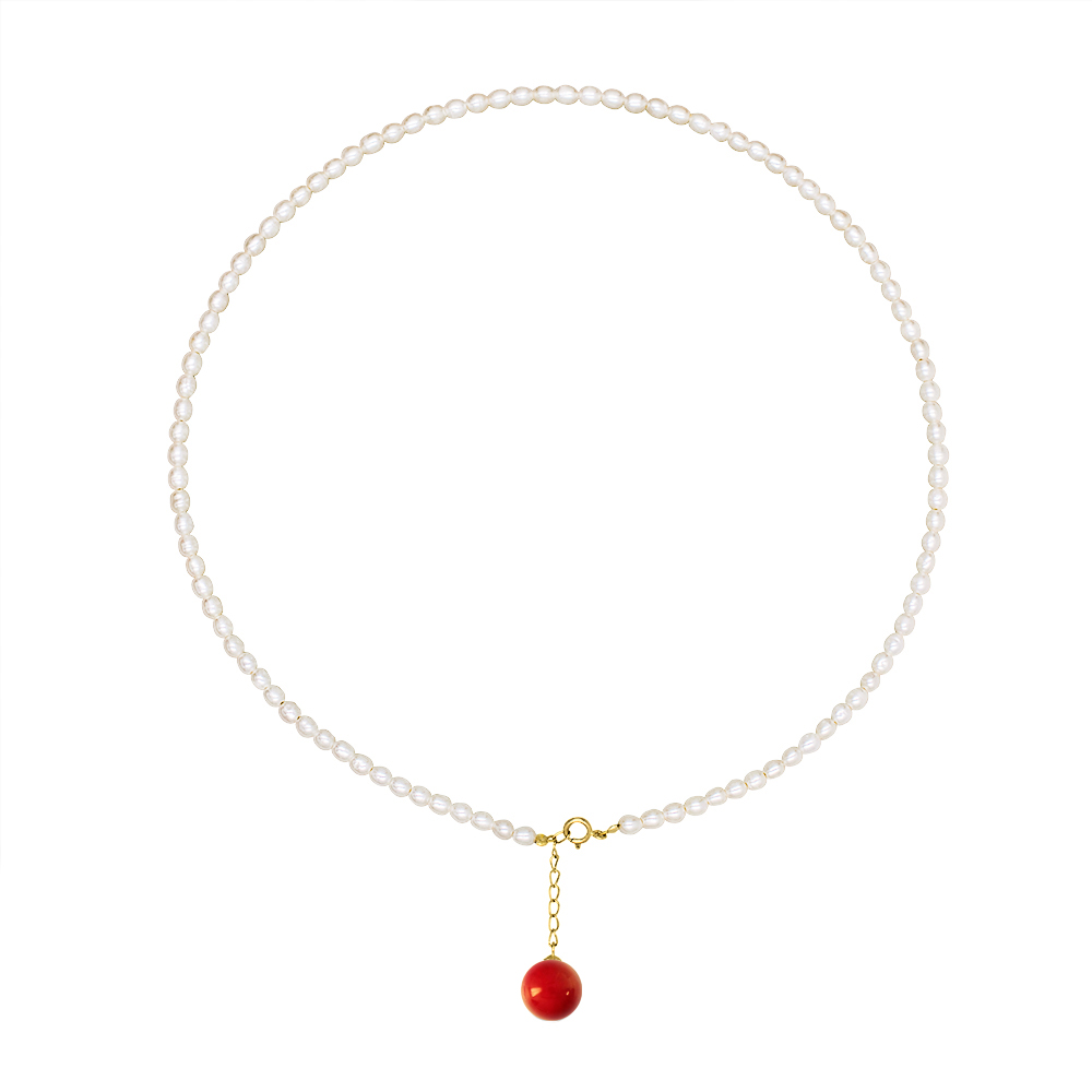 Κολιέ με λευκά μαργαριτάρια, κοράλλι και χρυσό κούμπωμα K18 - M125323C