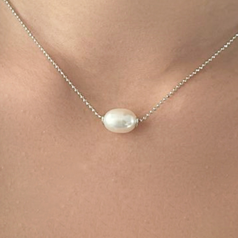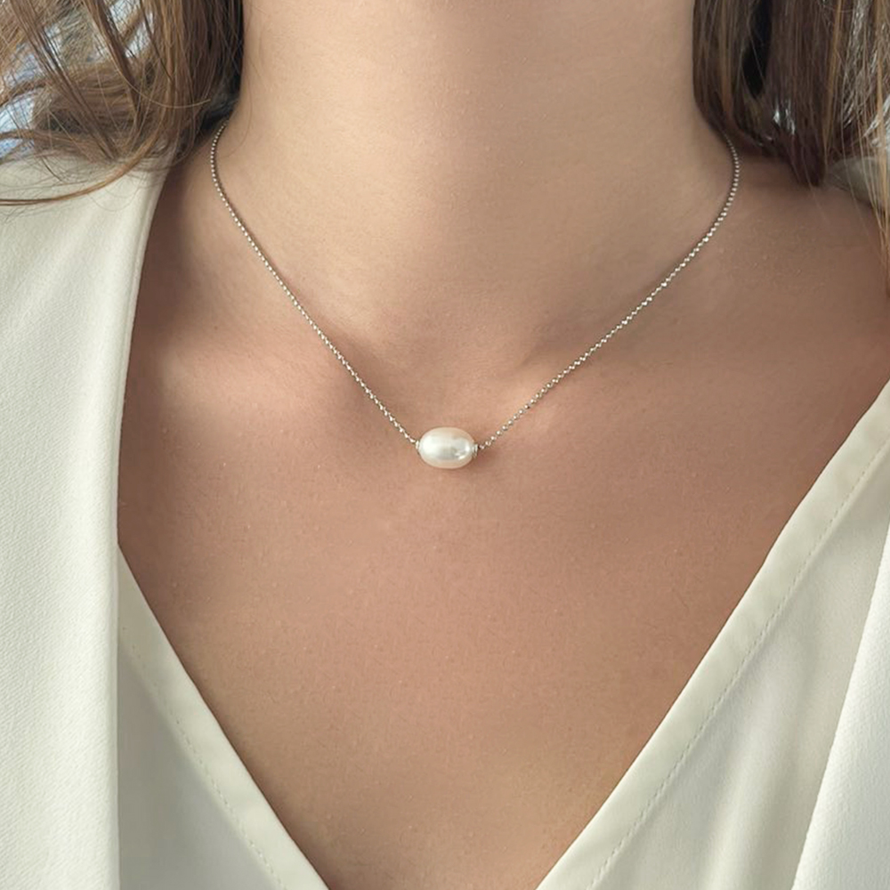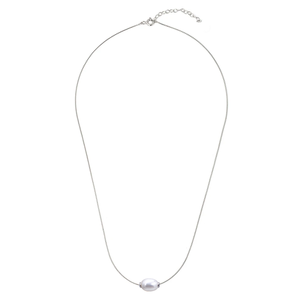 Κολιέ με λευκό μαργαριτάρι και ασημένια αλυσίδα 925 -M125253