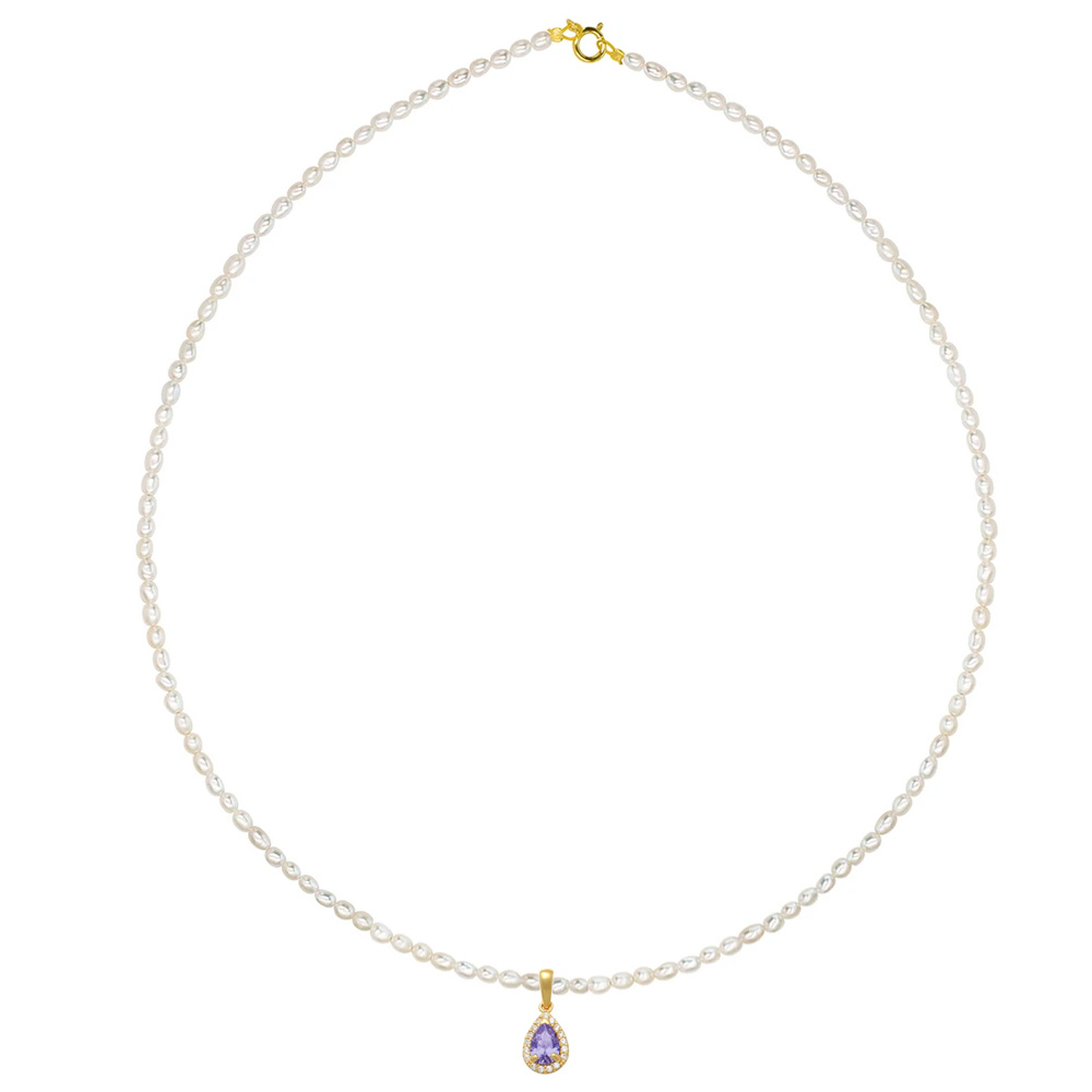 Κολιέ με Κ14 χρυσό κούμπωμα, λευκά μαργαριτάρια και Κ14 χρυσό μενταγιόν με αμέθυστο - F126095A
