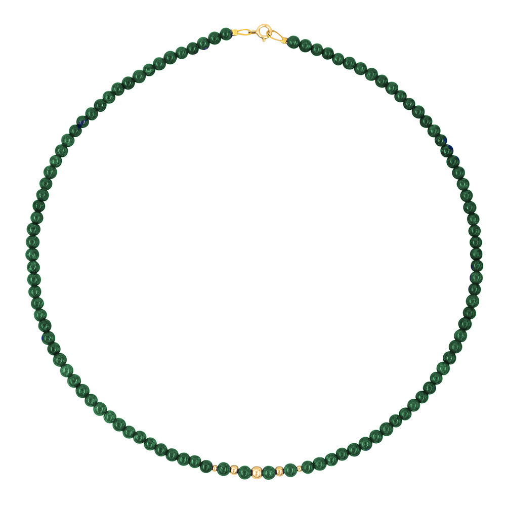 Ένα μοντέρνο κολιέ που συνδυάζει το απόλυτο χρώμα του μαλαχίτη με τη λάμψη του χρυσού, που θα ολοκληρώσει κάθε σας εμφάνιση.
