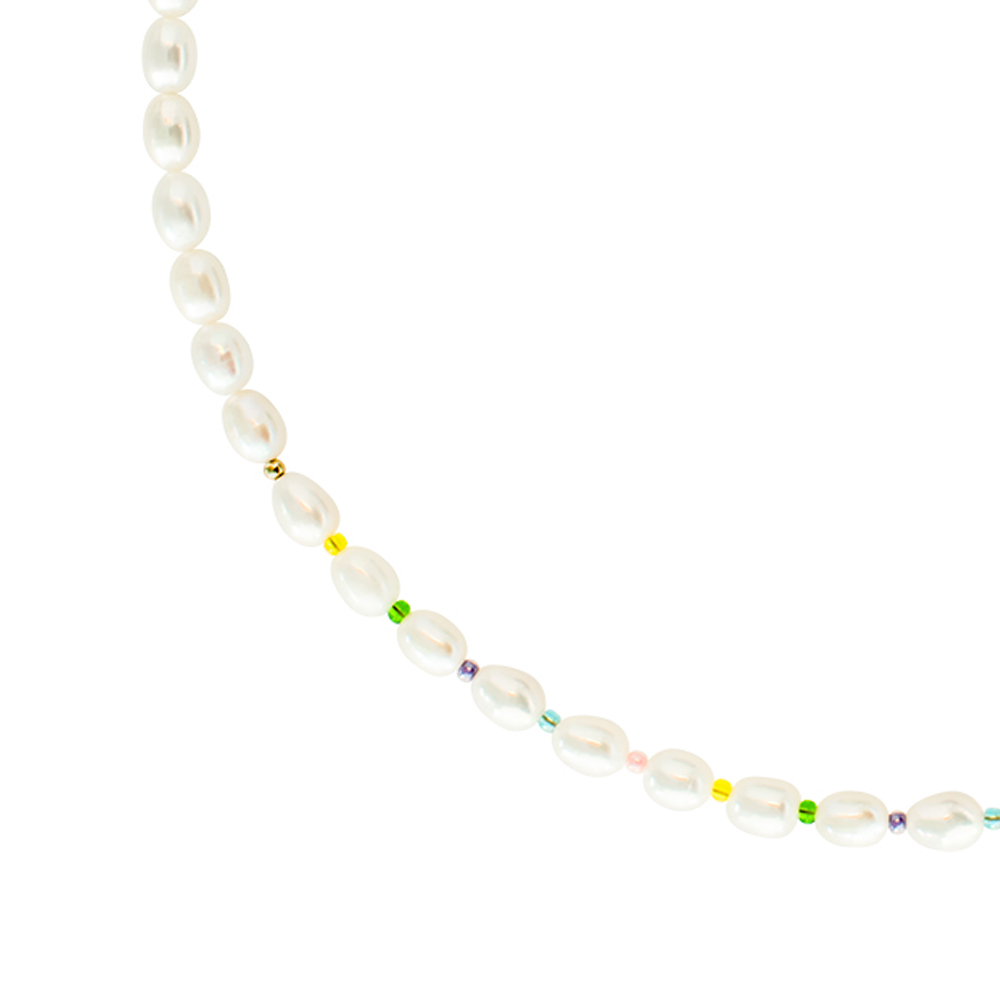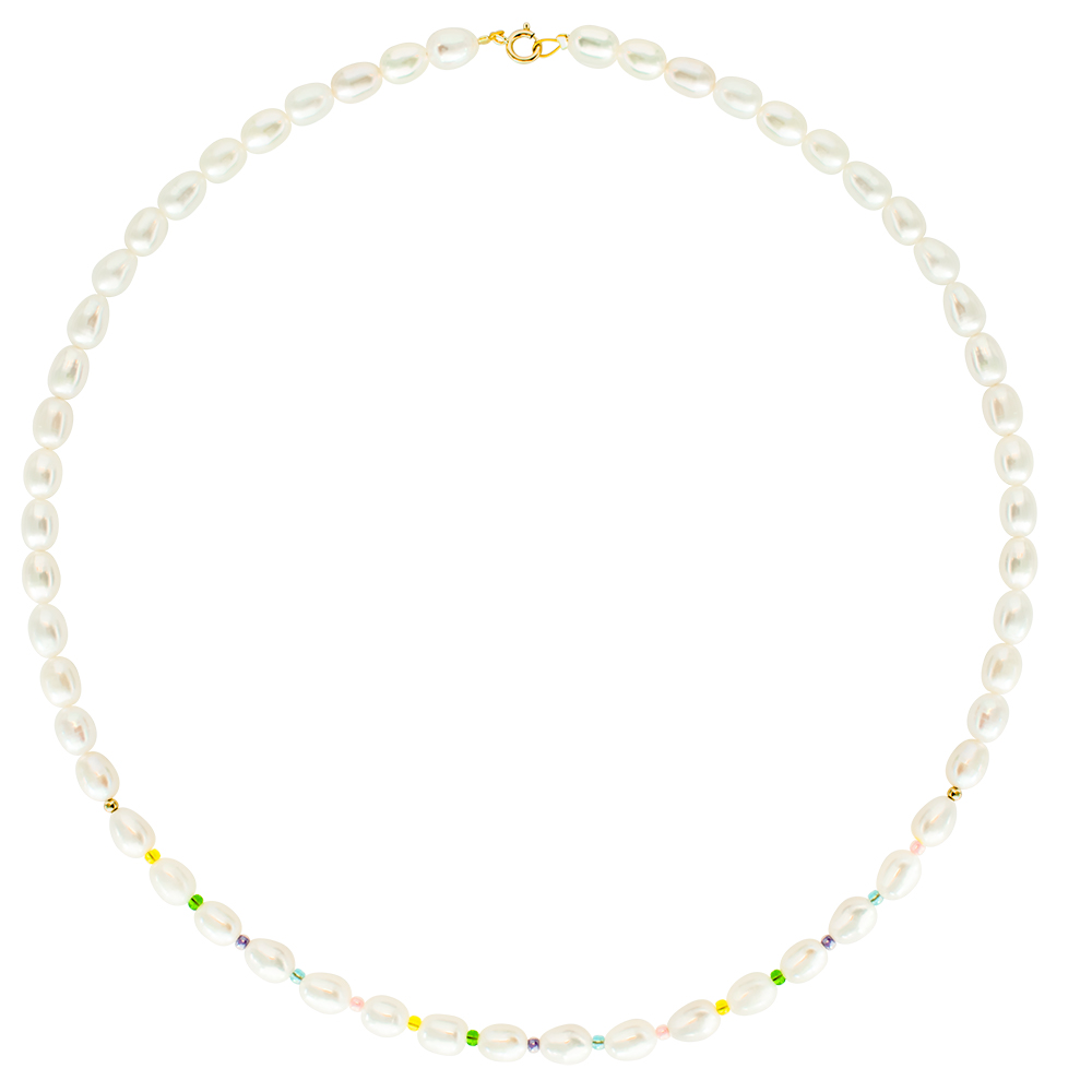 -8% Κολιέ με Κ14 χρυσά στοιχεία και λευκά μαργαριτάρια - F124332